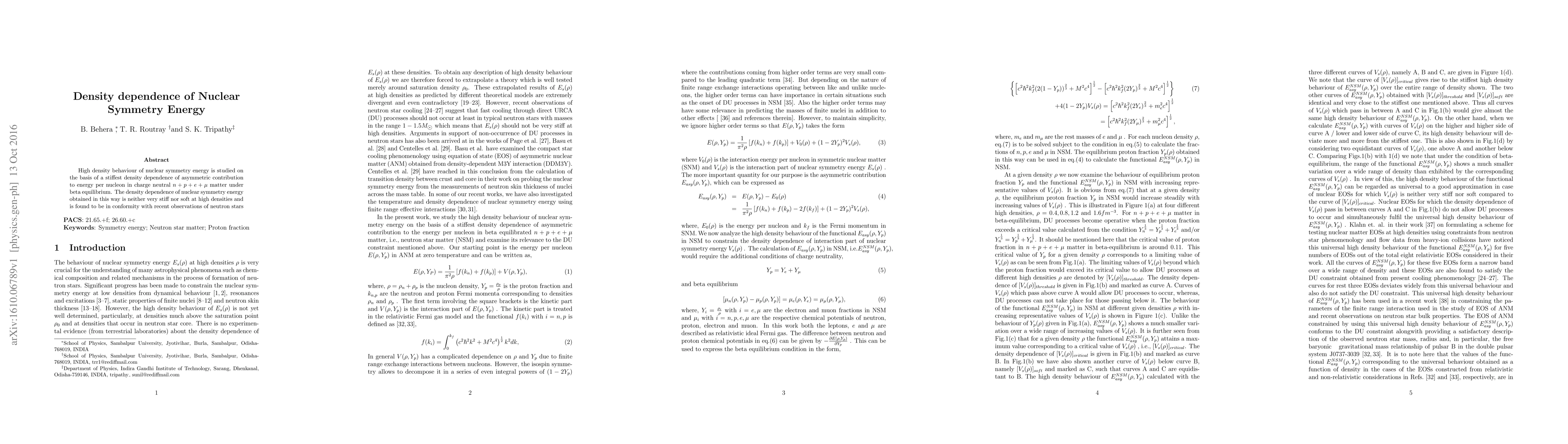 This paper investigates the high-density behavior of nuclear symmetry energy in charge-neutral matter, finding a moderate stiffness that aligns with recent observations of neutron stars. The study uses a stiffest density dependence model for the asymmetric nucleon energy contribution.