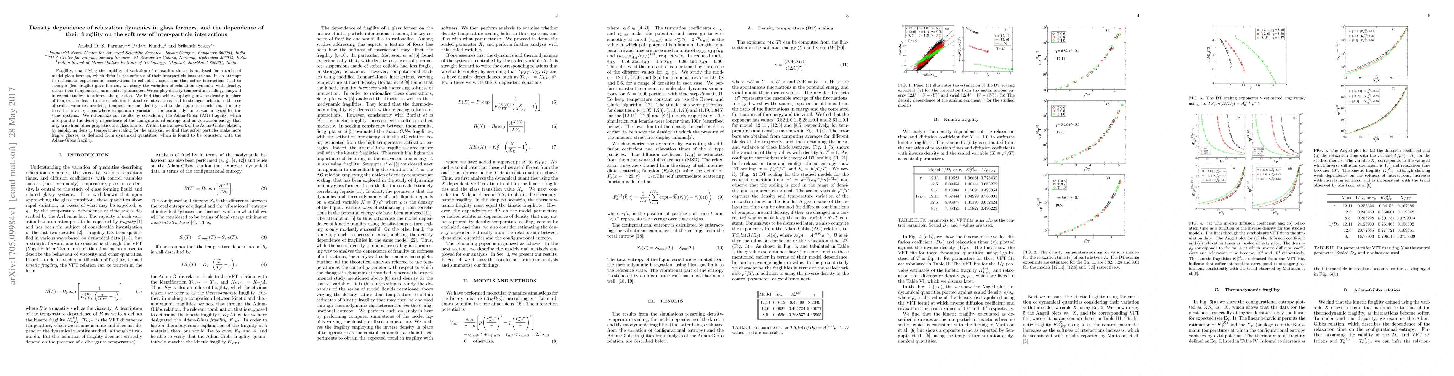 Fragility, quantifying the rapidity of variation of relaxation times, is analysed for a series of model glass formers, which differ in the softness of their interparticle interactions. In an attempt to rationalize experimental observations in colloidal suspensions that softer interactions lead to stronger (less fragile) glass formers, we study the variation of relaxation dynamics with density, rather than temperature, as a control parameter. We employ density temperature scaling, analyzed in recent studies, to address the question. We find that while employing inverse density in place of temperature leads to the conclusion that softer interactions lead to stronger behaviour, the use of scaled variables involving temperature and density lead to the opposite conclusion, similarly to earlier investigations where temperature variation of relaxation dynamics was analysed for the same systems. We rationalize our results by considering the Adam-Gibbs (AG) fragility, which incorporates the density dependence of the configurational entropy and an activation energy that may arise from other properties of a glass former. Within the framework of the Adam-Gibbs relation, by employing density temperature scaling for the analysis, we find that softer particles make more fragile glasses, as deduced from dynamical quantities, which is found to be consistent with the Adam-Gibbs fragility.