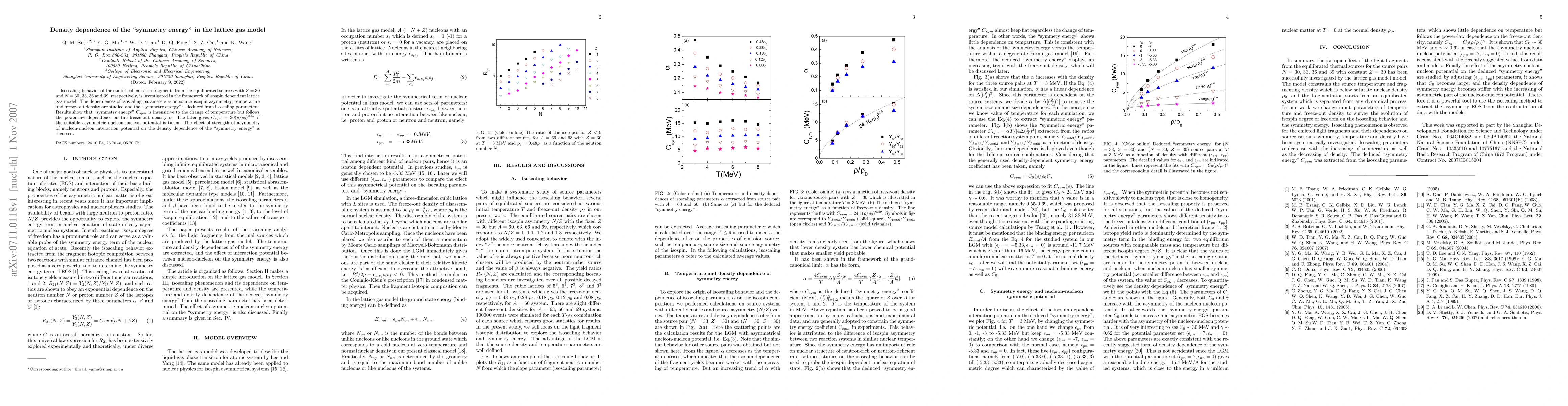 This paper investigates the density dependence of the "symmetry energy" in the lattice gas model using isoscaling behavior of fragments from equilibrated sources. It finds that the "symmetry energy" is largely unaffected by temperature but follows a power-law relationship with freeze-out density, suggesting $C_{sym}$ = 30$(\rho/\rho_0)^{0.62}$ under specific asymmetric nucleon-nucleon potentials.