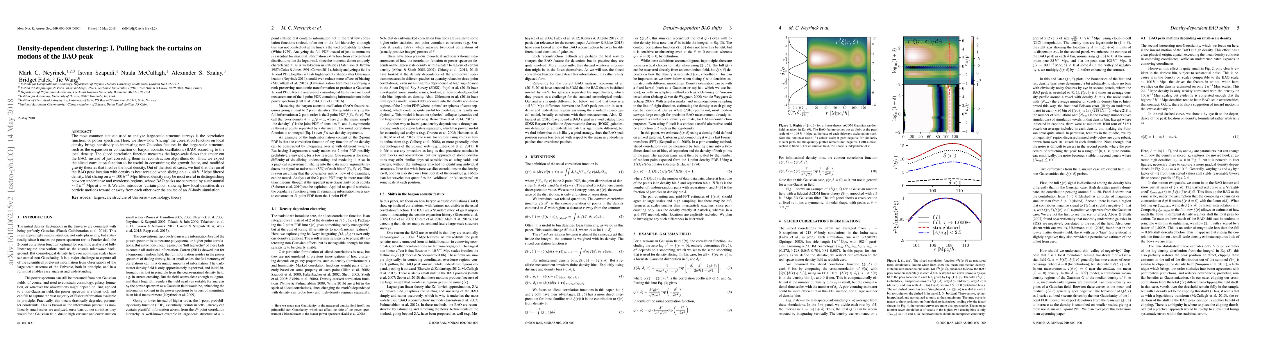 The most common statistic used to analyze large-scale structure surveys is the correlation function, or power spectrum. Here, we show how `slicing' the correlation function on local density brings sensitivity to interesting non-Gaussian features in the large-scale structure, such as the expansion or contraction of baryon acoustic oscillations (BAO) according to the local density. The sliced correlation function measures the large-scale flows that smear out the BAO, instead of just correcting them as reconstruction algorithms do. Thus, we expect the sliced correlation function to be useful in constraining the growth factor, and modified gravity theories that involve the local density. Out of the studied cases, we find that the run of the BAO peak location with density is best revealed when slicing on a $\sim 40$ Mpc/$h$ filtered density. But slicing on a $\sim100$ Mpc/$h$ filtered density may be most useful in distinguishing between underdense and overdense regions, whose BAO peaks are separated by a substantial $\sim 5$ Mpc/$h$ at $z=0$. We also introduce `curtain plots' showing how local densities drive particle motions toward or away from each other over the course of an $N$-body simulation.