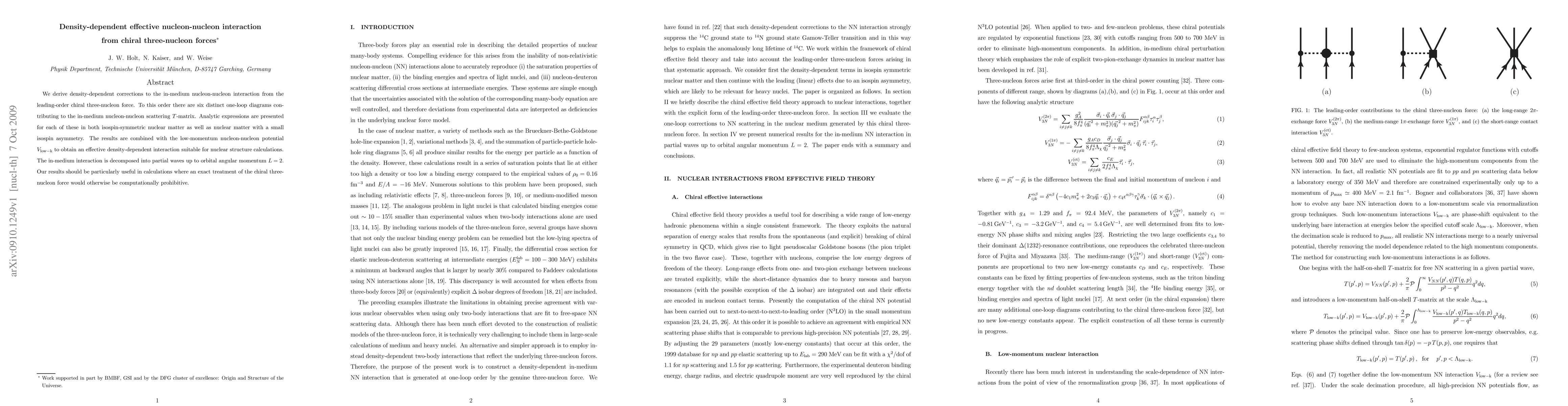 This paper derives density-dependent corrections to the nucleon-nucleon interaction from chiral three-nucleon forces, combining them with the V(low-k) potential to create an effective interaction for nuclear structure calculations. The study provides analytic expressions for six one-loop diagrams and decomposes the in-medium interaction into partial waves up to L = 2.