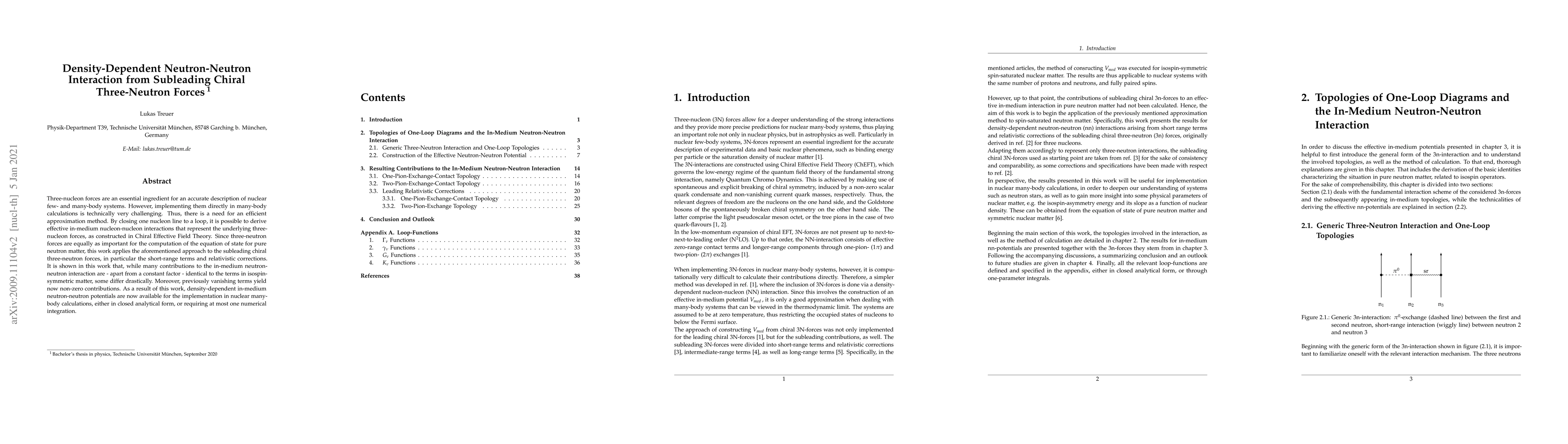 This paper develops density-dependent neutron-neutron interactions from subleading chiral three-neutron forces, focusing on short-range terms and relativistic corrections. It reveals distinct differences in contributions compared to isospin-symmetric matter, providing new analytical or numerically integrable potentials for nuclear many-body calculations.