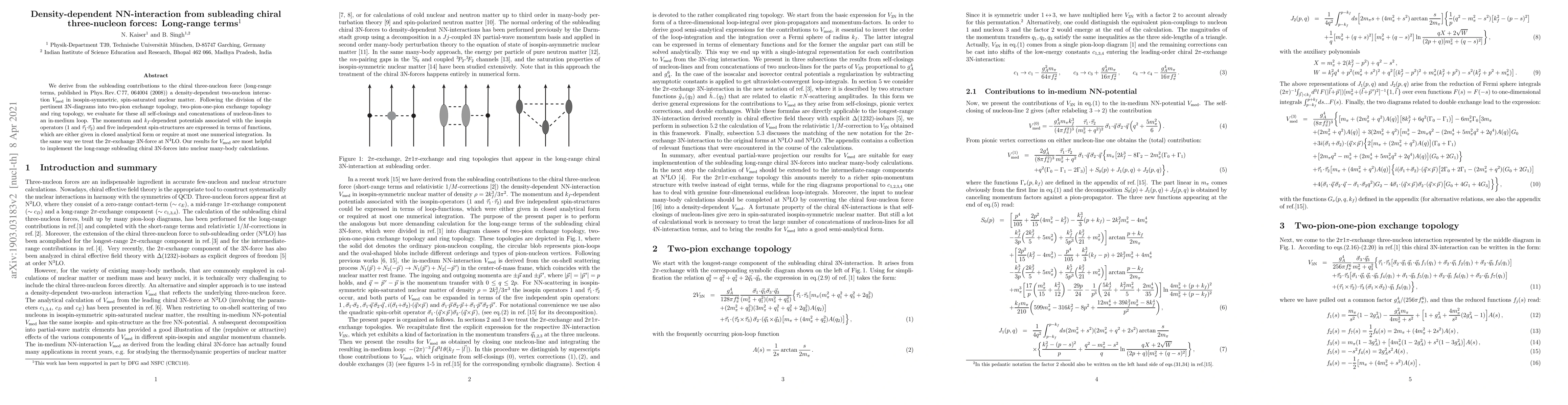 This paper derives a density-dependent two-nucleon interaction $V_\text{med}$ from subleading chiral three-nucleon forces, focusing on long-range terms. The study evaluates self-closings and concatenations of nucleon lines in various 3N-diagrams to formulate momentum and $k_f$-dependent potentials, aiding in nuclear many-body calculations.