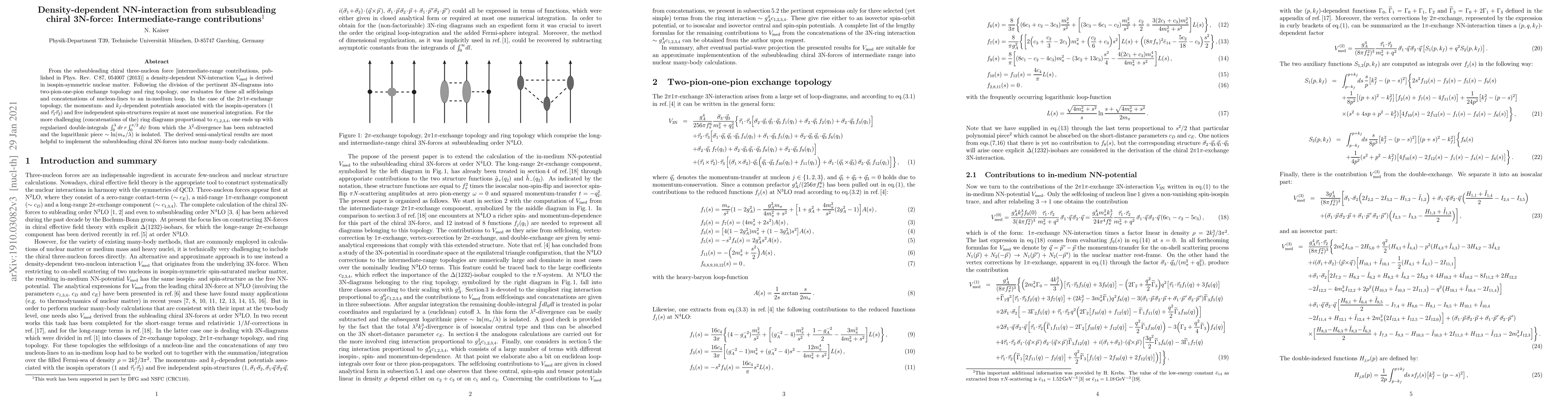 Researchers developed a density-dependent NN-interaction from subsubleading chiral 3N-force, providing semi-analytical results for nuclear many-body calculations.