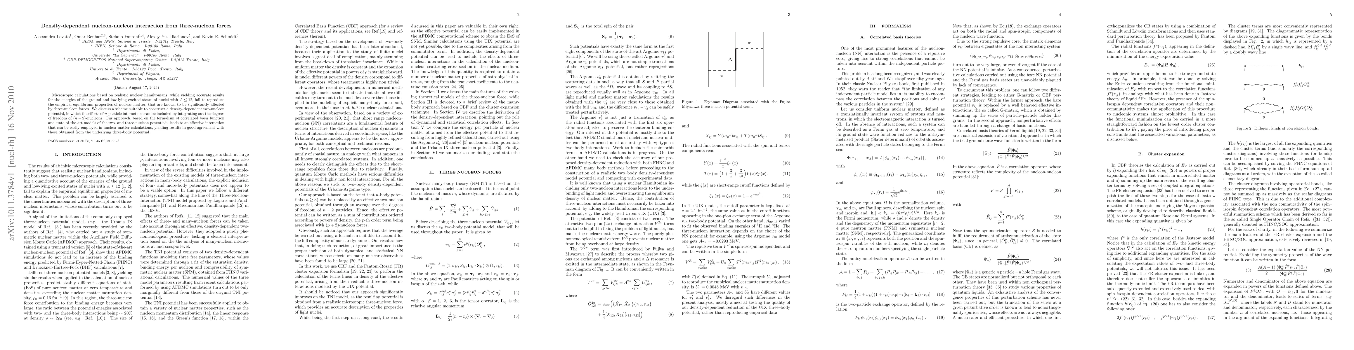 Microscopic calculations based on realistic nuclear hamiltonians, while yielding accurate results for the energies of the ground and low-lying excited states of nuclei with $A \leq 12$, fail to reproduce the empirical equilibrium properties of nuclear matter, that are known to be significantly affected by three-nucleon forces. We discuss a scheme suitable to construct a density-dependent two-nucleon potential, in which the effects of $n$-particle interactions can be included by integrating out the degrees of freedom of $(n-2)$-nucleons. Our approach, based on the formalism of correlated basis function and state-of-the-art models of the two- and three-nucleon potentials, leads to an effective interactionthat can be easily employed in nuclear matter calculations, yielding results in good agreement with those obtained from the underlying three-body potential.