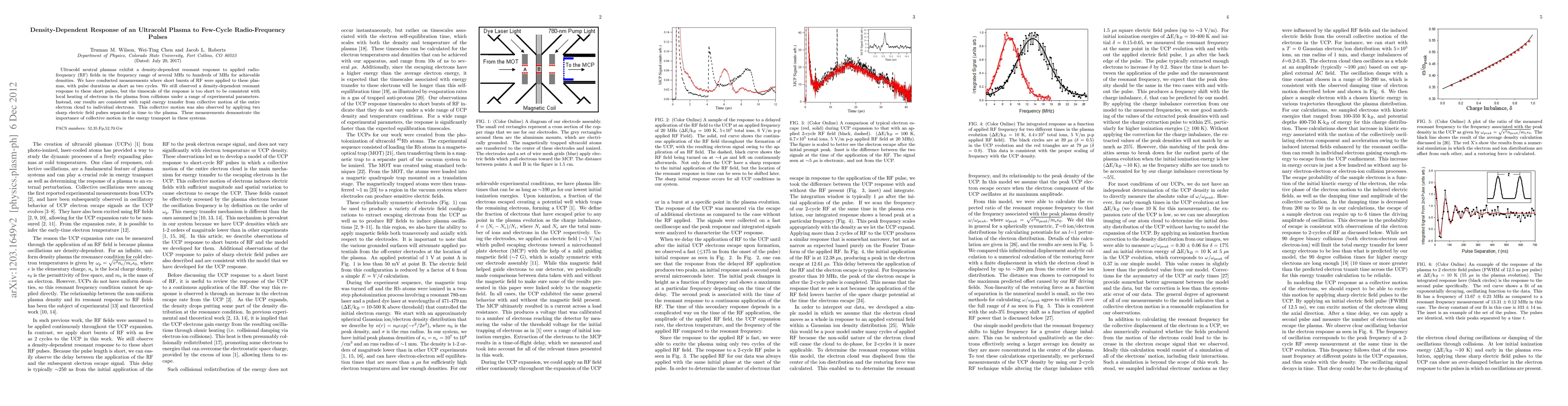 This study investigates the density-dependent response of ultracold neutral plasmas to few-cycle radio-frequency pulses, revealing that the response is not due to local heating but rather collective motion of the electron cloud, highlighting the importance of collective effects in energy transport.
