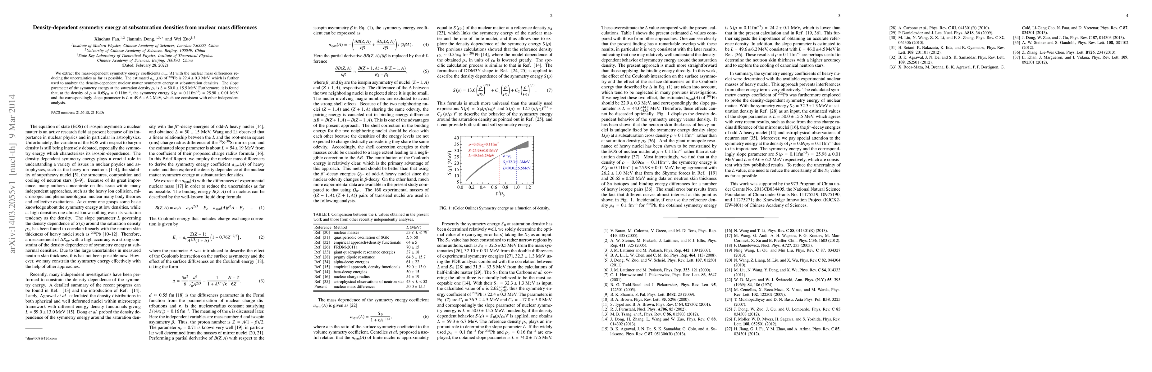 This paper determines the mass-dependent symmetry energy coefficients $a_{\text{sym}}(A)$ using nuclear mass differences, yielding $a_{\text{sym}}(^{208}\text{Pb}) = 22.4\pm 0.3$ MeV. It further analyzes the density-dependent nuclear matter symmetry energy at subsaturation densities, finding $S(\rho=0.11\text{fm}^{-3}) = 25.98\pm0.01$ MeV and $L=49.6\pm6.2$ MeV.