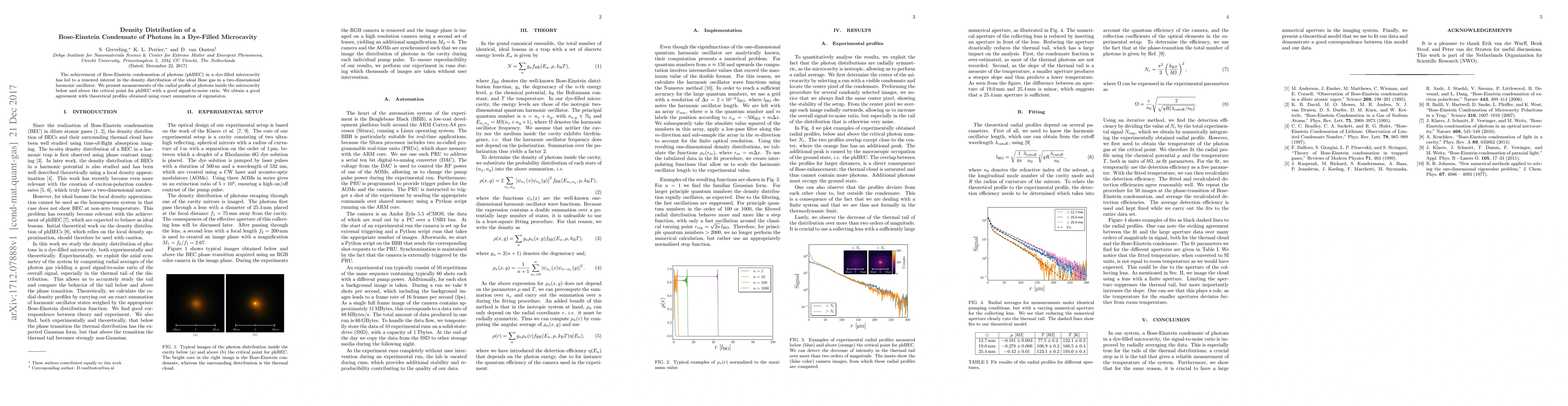 This paper reports on the density distribution of a Bose-Einstein condensate of photons in a dye-filled microcavity, presenting measurements of the radial photon profile both below and above the critical condensation point. The results align well with theoretical predictions derived from exact eigenstate summation.