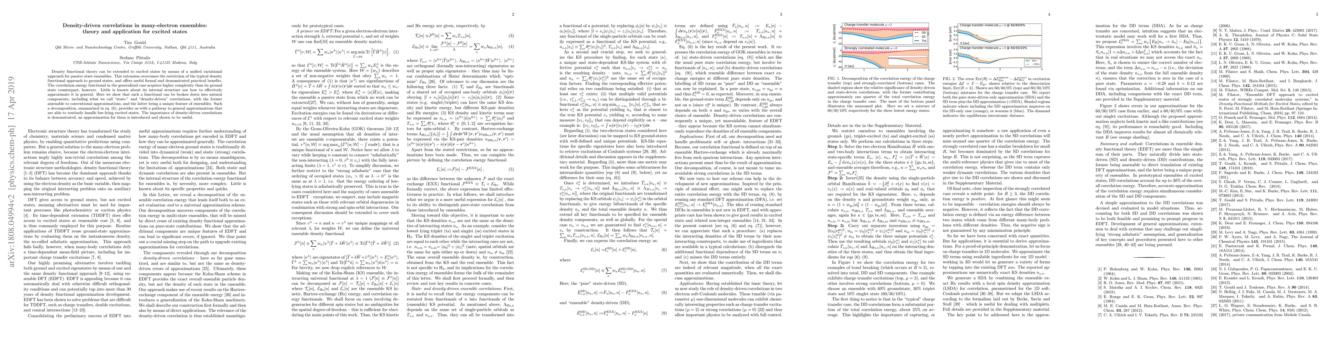 This paper introduces a new approach to density functional theory for excited states, breaking down correlation energy into state- and density-driven components that can be approximated effectively. It demonstrates the importance of density-driven correlations and provides a pathway to general approximations for low-lying excited states.