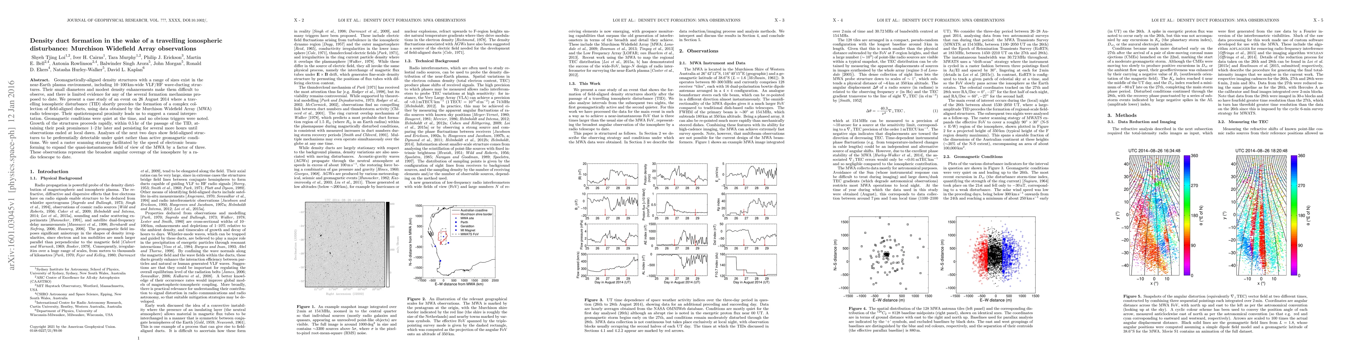 Geomagnetically-aligned density structures with a range of sizes exist in the near-Earth plasma environment, including 10-100 km-wide VLF/HF wave-ducting structures. Their small diameters and modest density enhancements make them difficult to observe, and there is limited evidence for any of the several formation mechanisms proposed to date. We present a case study of an event on 26 August 2014 where a travelling ionospheric disturbance (TID) shortly precedes the formation of a complex collection of field-aligned ducts, using data obtained by the Murchison Widefield Array (MWA) radio telescope. Their spatiotemporal proximity leads us to suggest a causal interpretation. Geomagnetic conditions were quiet at the time, and no obvious triggers were noted. Growth of the structures proceeds rapidly, within 0.5 hr of the passage of the TID, attaining their peak prominence 1-2 hr later and persisting for several more hours until observations ended at local dawn. Analyses of the next two days show field-aligned structures to be preferentially detectable under quiet rather than active geomagnetic conditions. We used a raster scanning strategy facilitated by the speed of electronic beamforming to expand the quasi-instantaneous field of view of the MWA by a factor of three. These observations represent the broadest angular coverage of the ionosphere by a radio telescope to date.