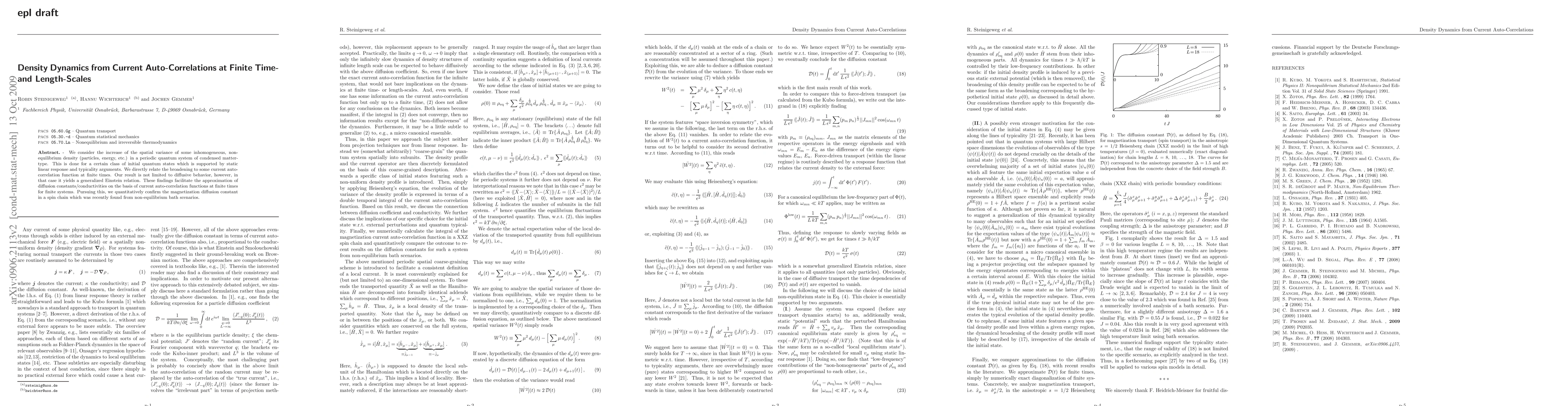 We consider the increase of the spatial variance of some inhomogeneous, non-equilibrium density (particles, energy, etc.) in a periodic quantum system of condensed matter-type. This is done for a certain class of initial quantum states which is supported by static linear response and typicality arguments. We directly relate the broadening to some current auto-correlation function at finite times. Our result is not limited to diffusive behavior, however, in that case it yields a generalized Einstein relation. These findings facilitate the approximation of diffusion constants/conductivities on the basis of current auto-correlation functions at finite times for finite systems. Pursuing this, we quantitatively confirm the magnetization diffusion constant in a spin chain which was recently found from non-equilibrium bath scenarios.