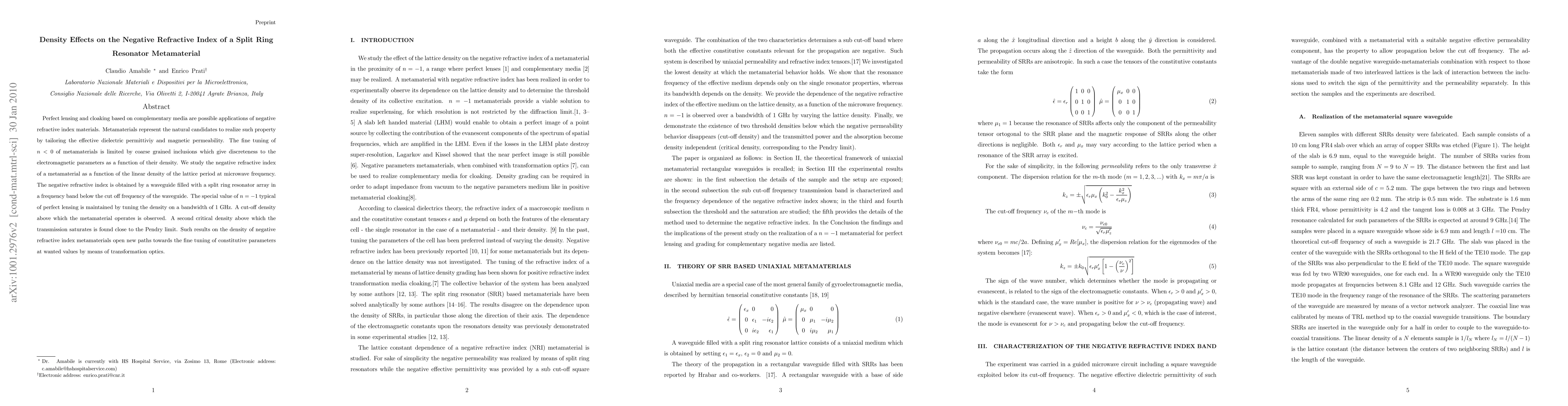 This study investigates the impact of varying the linear density of a split ring resonator metamaterial on its negative refractive index at microwave frequencies. The research finds that maintaining a refractive index of $n=-1$ for perfect lensing requires tuning the density within a 1 GHz bandwidth, while a critical density limits the operational effectiveness of the metamaterial.