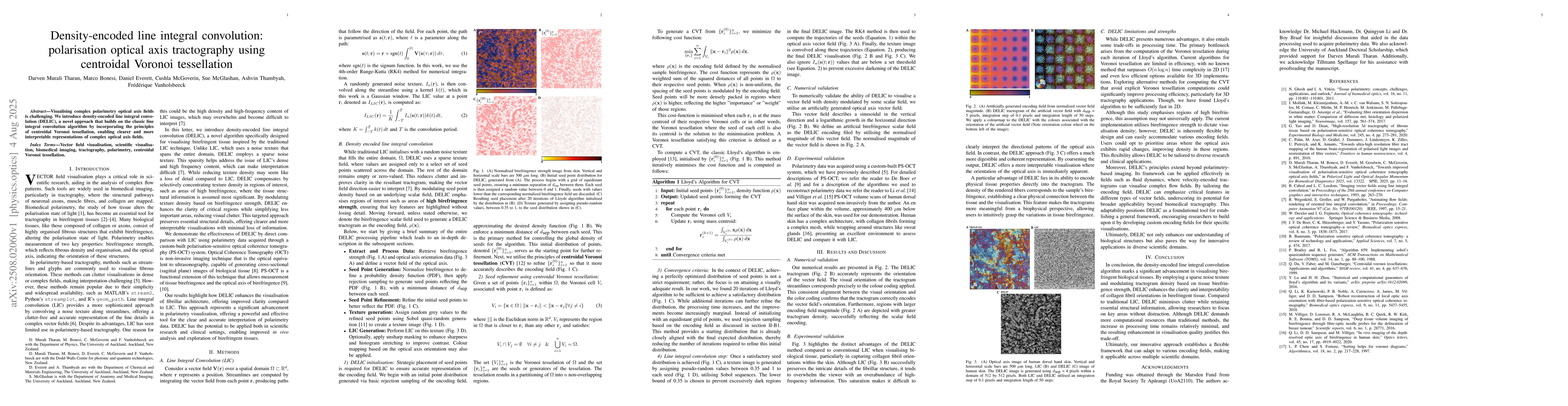 Visualising complex polarimetry optical axis fields is challenging. We introduce density-encoded line integral convolution (DELIC), a novel approach that builds on the classic line integral convolution algorithm by incorporating the principles of centroidal Voronoi tessellation, enabling clearer and more interpretable representations of complex optical axis fields.