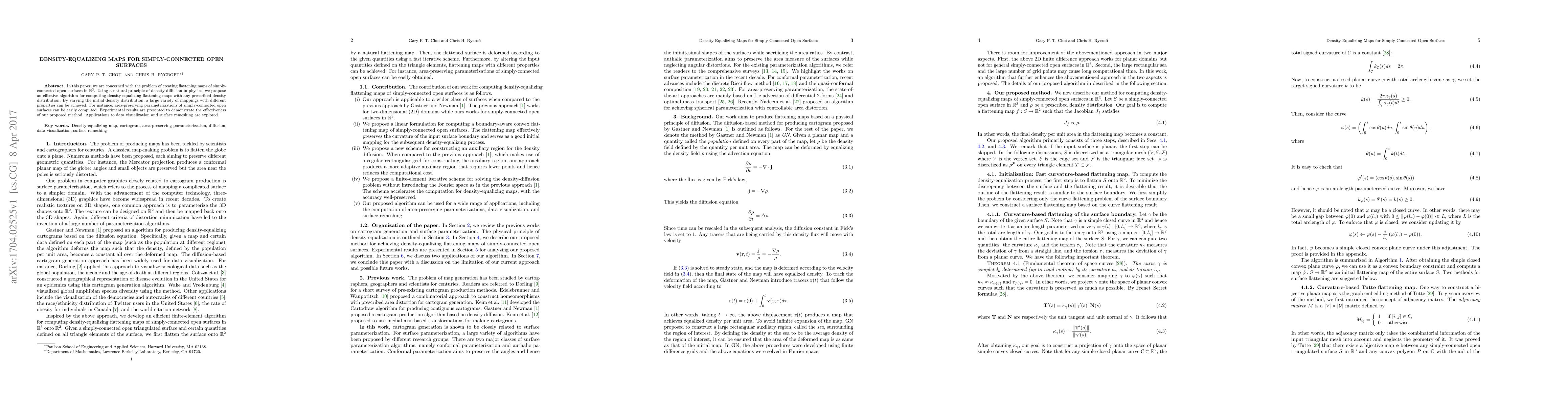 This paper proposes an algorithm for generating density-equalizing flattening maps of simply-connected open surfaces in $\mathbb{R}^3$, utilizing a density diffusion principle. The method can produce various mappings, including area-preserving parameterizations, and is demonstrated through applications in data visualization and surface remeshing.