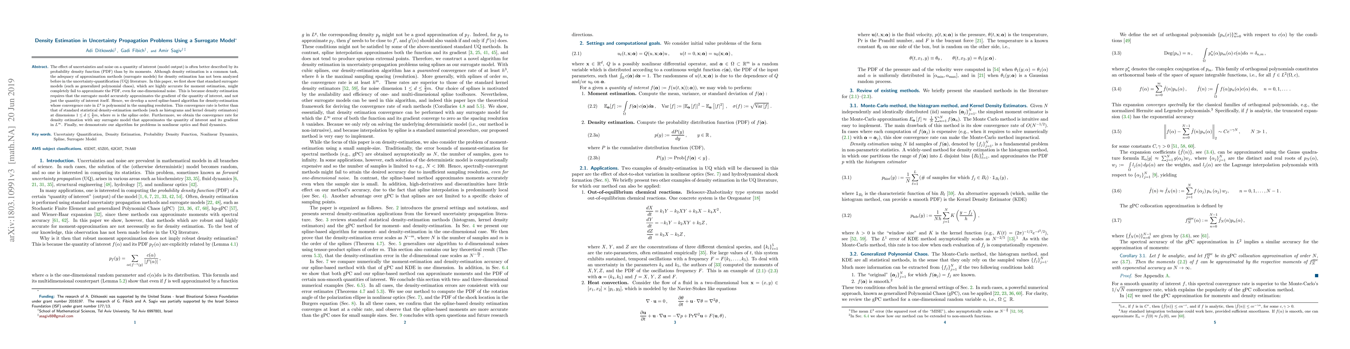 This paper reveals that standard surrogate models used for moment estimation may fail in approximating probability density functions (PDFs) due to inadequate gradient approximation. A novel spline-based density-estimation algorithm with a polynomial convergence rate in sampling resolution is proposed, outperforming statistical methods in lower dimensions. The algorithm is demonstrated for problems in nonlinear optics and fluid dynamics.