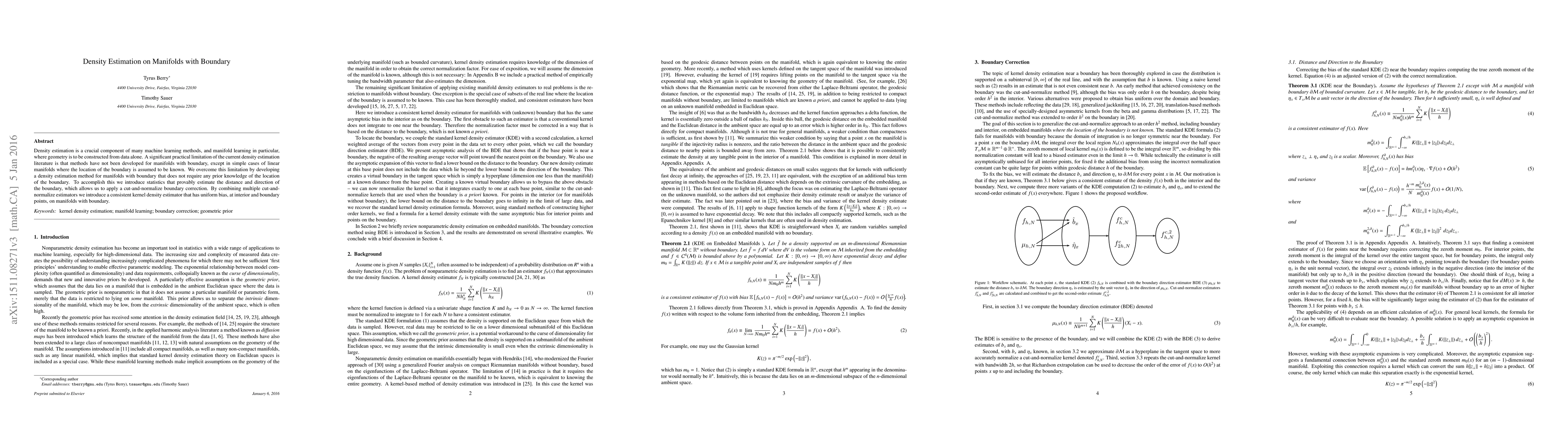 Density estimation is a crucial component of many machine learning methods, and manifold learning in particular, where geometry is to be constructed from data alone. A significant practical limitation of the current density estimation literature is that methods have not been developed for manifolds with boundary, except in simple cases of linear manifolds where the location of the boundary is assumed to be known. We overcome this limitation by developing a density estimation method for manifolds with boundary that does not require any prior knowledge of the location of the boundary. To accomplish this we introduce statistics that provably estimate the distance and direction of the boundary, which allows us to apply a cut-and-normalize boundary correction. By combining multiple cut-and-normalize estimators we introduce a consistent kernel density estimator that has uniform bias, at interior and boundary points, on manifolds with boundary.