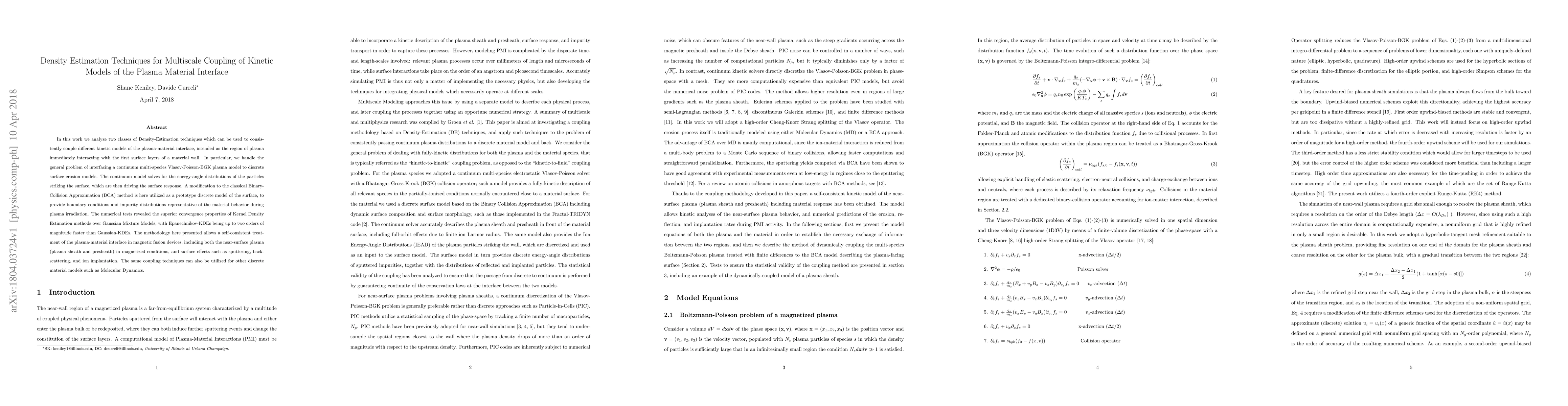 A new method for coupling kinetic models of plasma-material interfaces was developed, showing faster convergence with Kernel Density Estimation over Gaussian Mixture Models.