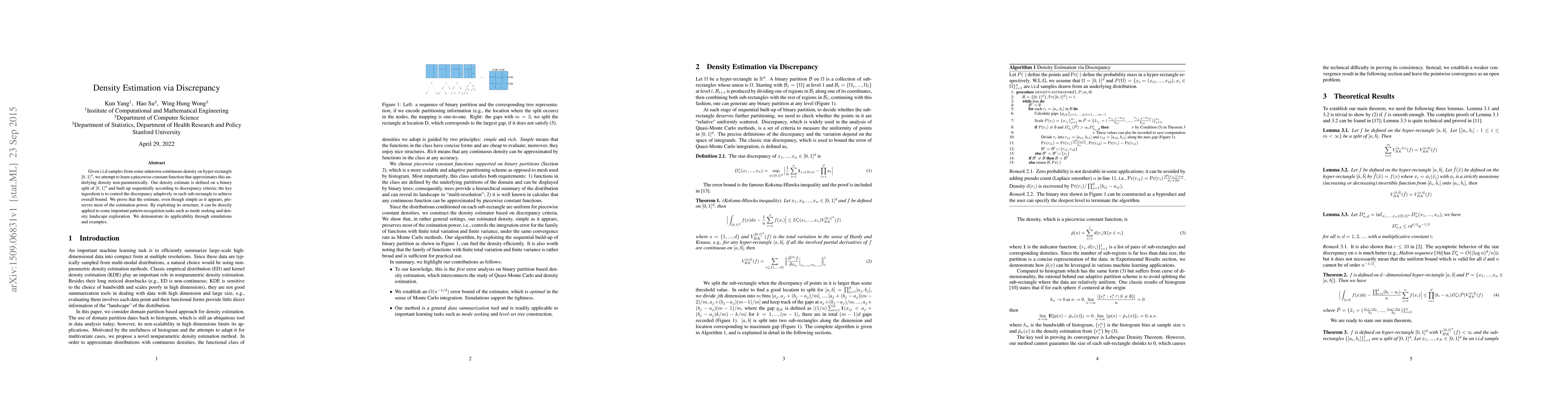 Given i.i.d samples from some unknown continuous density on hyper-rectangle $[0, 1]^d$, we attempt to learn a piecewise constant function that approximates this underlying density non-parametrically. Our density estimate is defined on a binary split of $[0, 1]^d$ and built up sequentially according to discrepancy criteria; the key ingredient is to control the discrepancy adaptively in each sub-rectangle to achieve overall bound. We prove that the estimate, even though simple as it appears, preserves most of the estimation power. By exploiting its structure, it can be directly applied to some important pattern recognition tasks such as mode seeking and density landscape exploration. We demonstrate its applicability through simulations and examples.