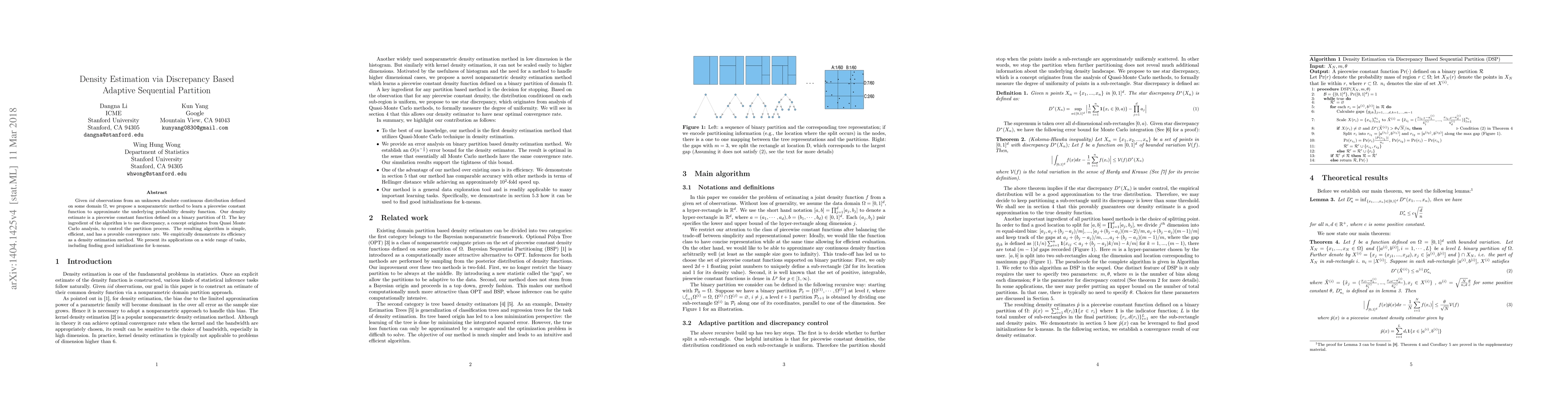 A new method for nonparametric density estimation uses discrepancy to control a partition process, resulting in an efficient algorithm with a provable convergence rate.