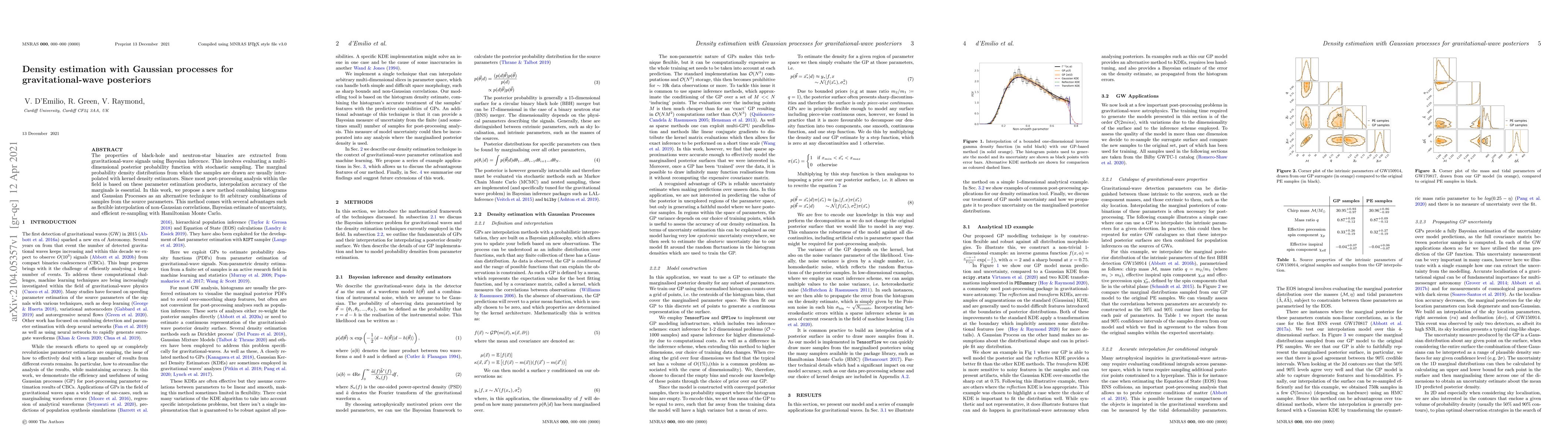 This paper proposes a novel method using Gaussian Processes combined with histograms to accurately estimate the density of posterior distributions in gravitational-wave signals from black-hole and neutron-star binaries, offering flexible interpolation, Bayesian uncertainty estimates, and efficient re-sampling.