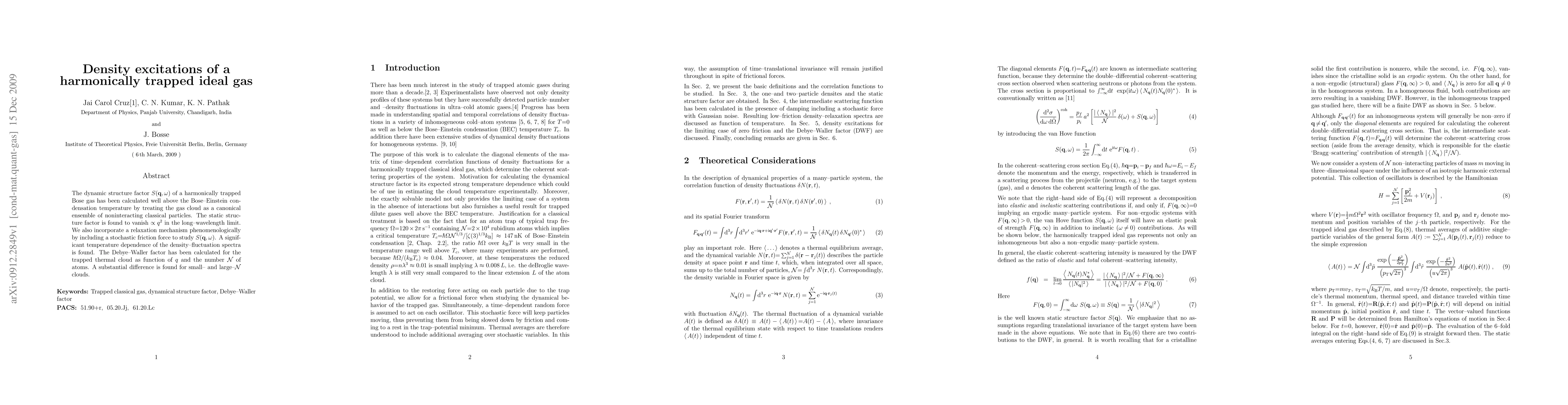 This paper calculates the dynamic structure factor for a harmonically trapped Bose gas above the Bose-Einstein condensation temperature, revealing a temperature-dependent density-fluctuation spectrum. The static structure factor vanishes as wavenumber squared in the long-wavelength limit, and the Debye-Waller factor shows significant differences between clouds with small and large particle numbers.