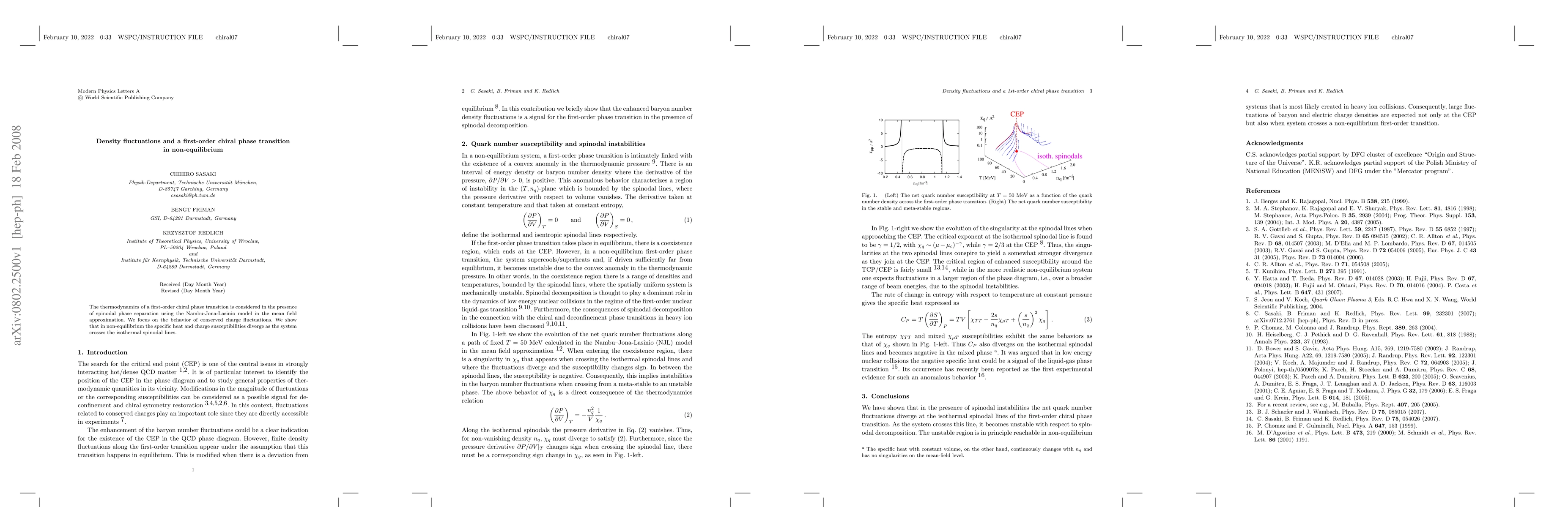 Summary: This study examines the thermodynamics of a first-order chiral phase transition in non-equilibrium conditions using the Nambu-Jona-Lasinio model, revealing that conserved charge fluctuations and specific heat diverge along isothermal spinodal lines.