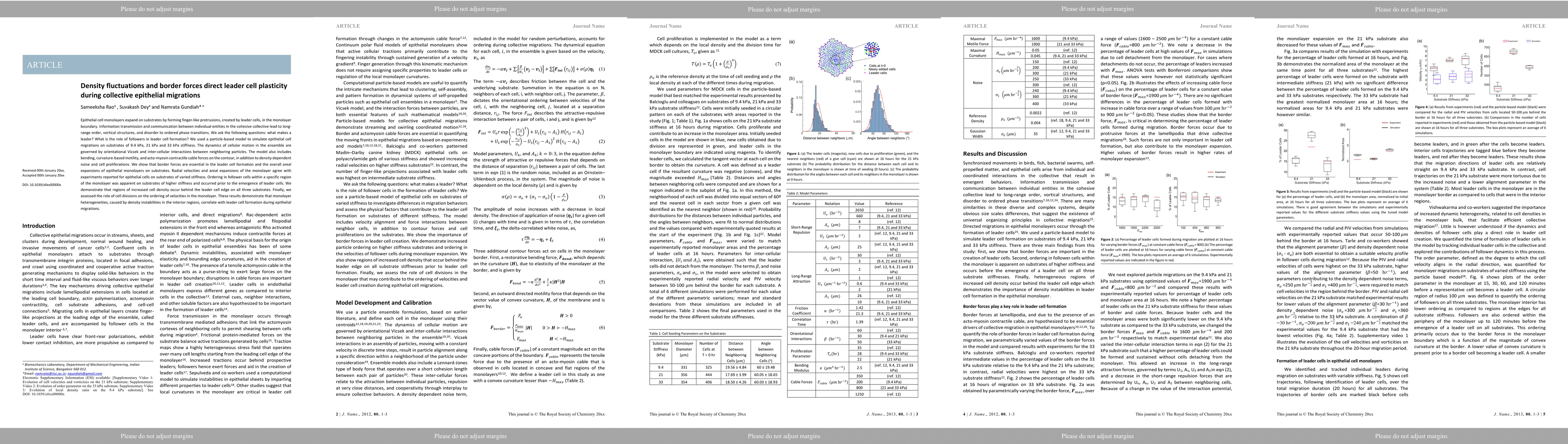 This study investigates how density fluctuations and border forces influence leader cell plasticity in collective epithelial migrations. Using a particle-based model, the research demonstrates that border forces are crucial for leader cell formation and monolayer expansion, with increased cell density correlating with leader cell emergence, especially on stiffer substrates.