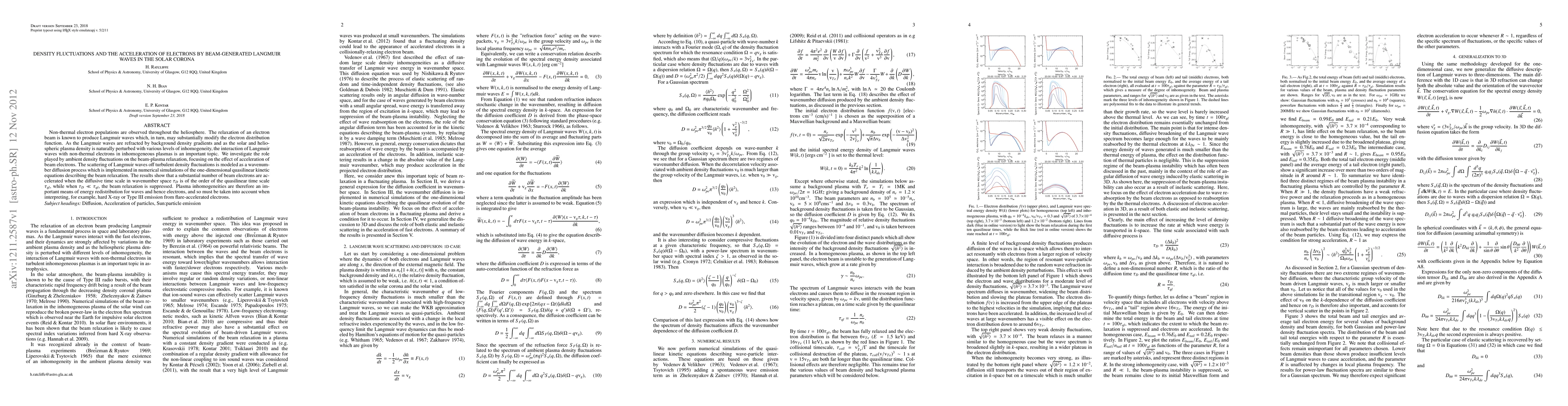 This paper investigates how density fluctuations in the solar corona affect the acceleration of electrons via beam-generated Langmuir waves. Numerical simulations show that when the wavenumber diffusion time scale matches the quasilinear time scale, many beam electrons are accelerated, highlighting the importance of plasma inhomogeneities in energy redistribution.
