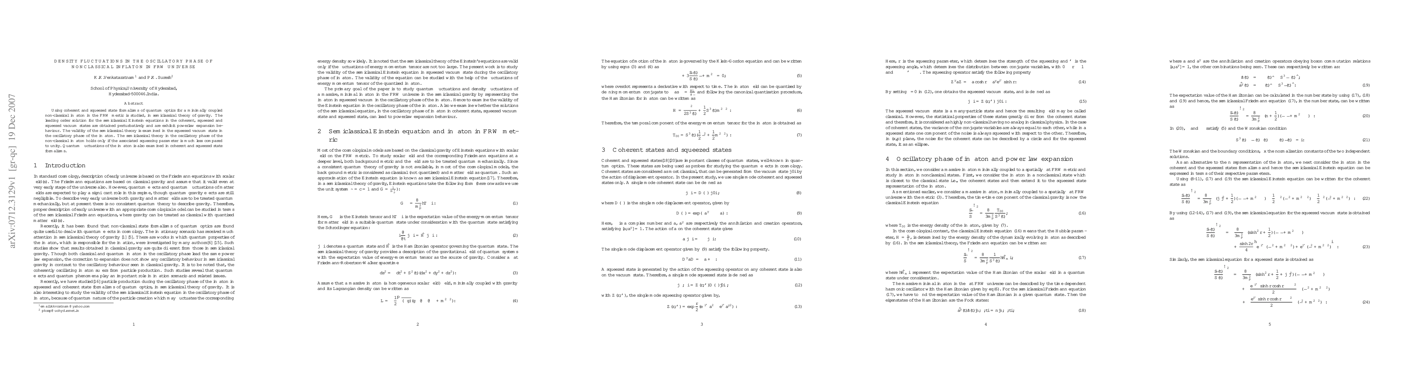 This paper investigates density fluctuations in the oscillatory phase of a nonclassical inflaton in a Friedmann-Robertson-Walker (FRW) universe using quantum optics formalisms. It finds that the semiclassical theory is valid only if the squeezing parameter is much less than one, and examines quantum fluctuations in coherent and squeezed states.