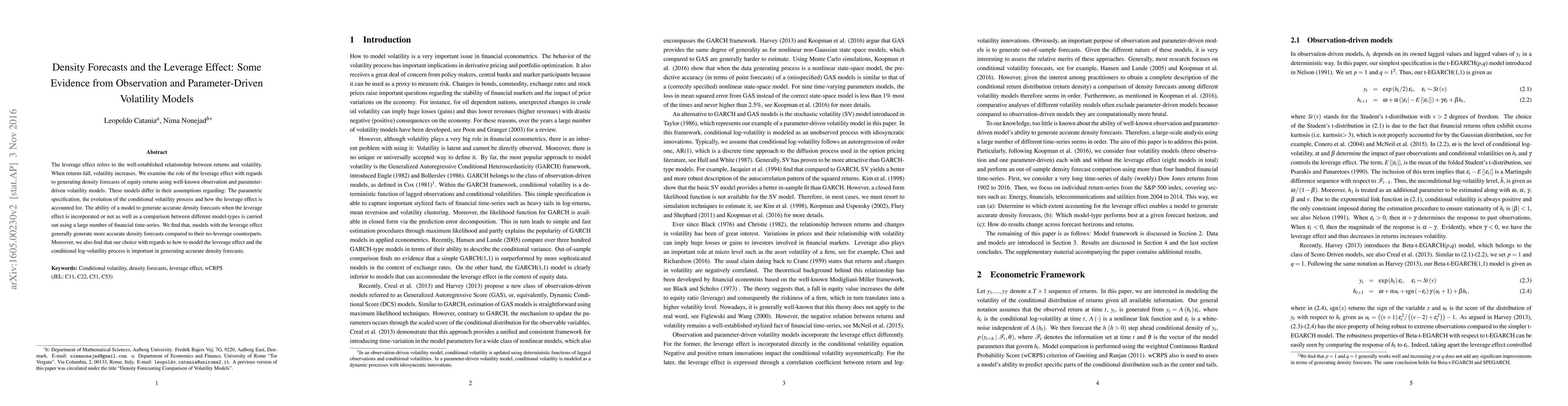 This paper investigates how the leverage effect influences density forecasts for equity returns using observation and parameter-driven volatility models. It finds that models incorporating the leverage effect generally produce more accurate density forecasts than those without, highlighting the importance of modeling the leverage effect and volatility processes.