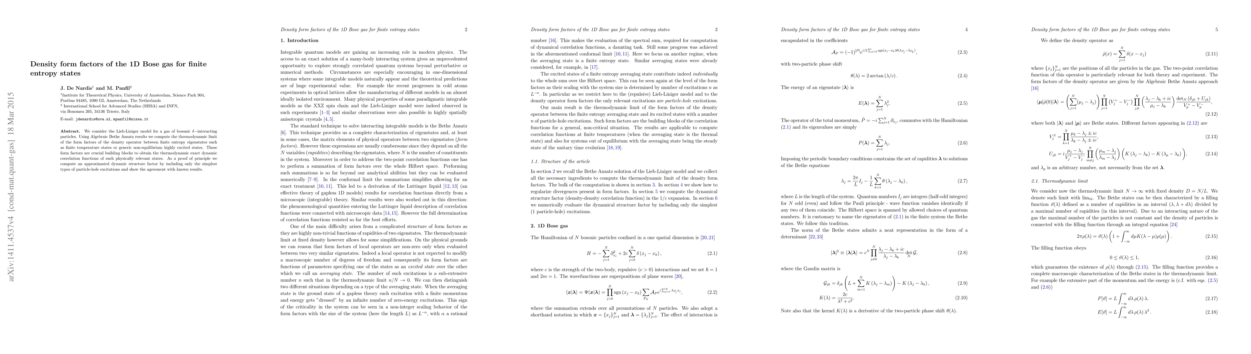 We consider the Lieb-Liniger model for a gas of bosonic $\delta-$interacting particles. Using Algebraic Bethe Ansatz results we compute the thermodynamic limit of the form factors of the density operator between finite entropy eigenstates such as finite temperature states or generic non-equilibrium highly excited states. These form factors are crucial building blocks to obtain the thermodynamic exact dynamic correlation functions of such physically relevant states. As a proof of principle we compute an approximated dynamic structure factor by including only the simplest types of particle-hole excitations and show the agreement with known results.