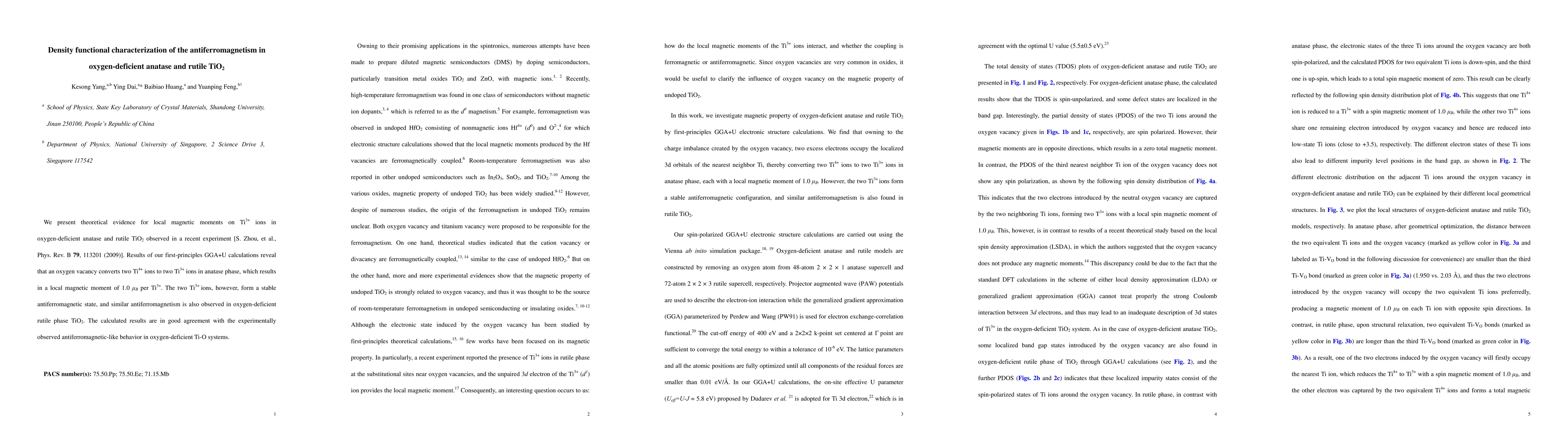 The paper presents theoretical evidence supporting the existence of local magnetic moments on Ti3+ ions in oxygen-deficient anatase and rutile TiO2, revealing that an oxygen vacancy induces antiferromagnetic behavior in both phases, consistent with recent experimental observations.