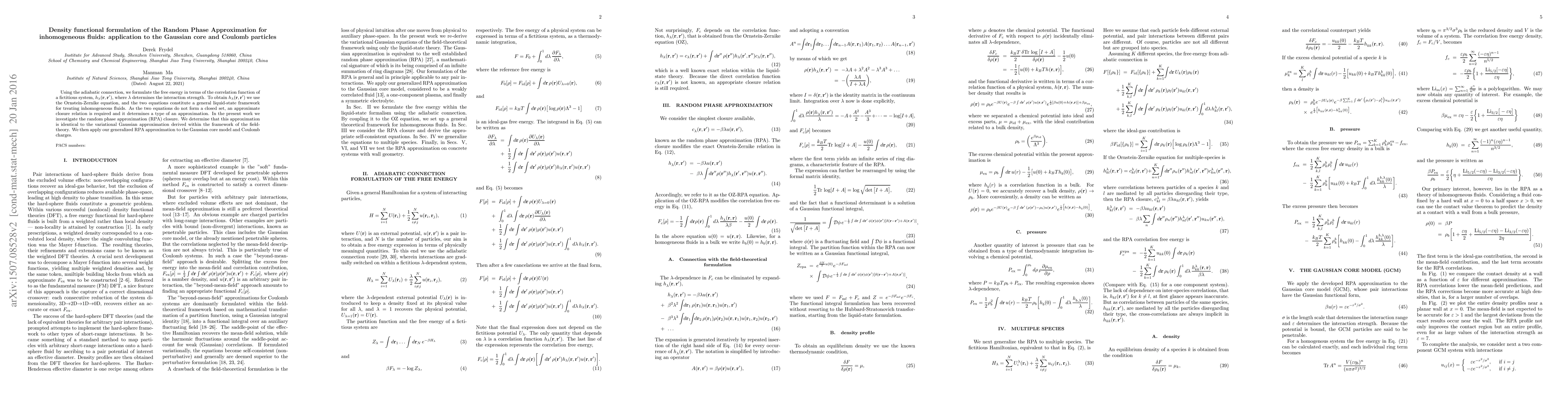 Using the adiabatic connection, we formulate the free energy in terms of the correlation function of a fictitious system, $h_{\lambda}({\bf r},{\bf r}')$, where $\lambda$ determines the interaction strength. To obtain $h_{\lambda}({\bf r},{\bf r}')$ we use the Ornstein-Zernike equation, and the two equations constitute a general liquid-state framework for treating inhomogeneous fluids. As the two equations do not form a closed set, an approximate closure relation is required and it determines a type of an approximation. In the present work we investigate the random phase approximation (RPA) closure. We determine that this approximation is identical to the variational Gaussian approximation derived within the framework of the field-theory. We then apply our generalized RPA approximation to the Gaussian core model and Coulomb charges.