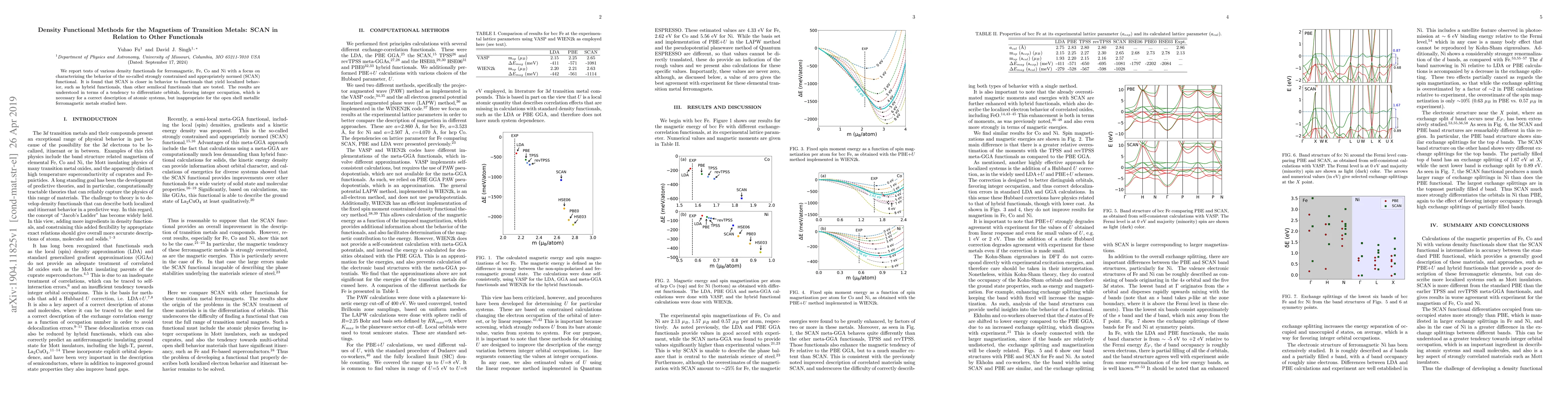This paper evaluates the performance of the SCAN density functional method against other functionals for modeling magnetism in transition metals like Fe, Co, and Ni. SCAN, which favors localized behavior, is found to be more aligned with hybrid functionals but less suitable for open shell metallic ferromagnets due to its preference for integer orbital occupation.