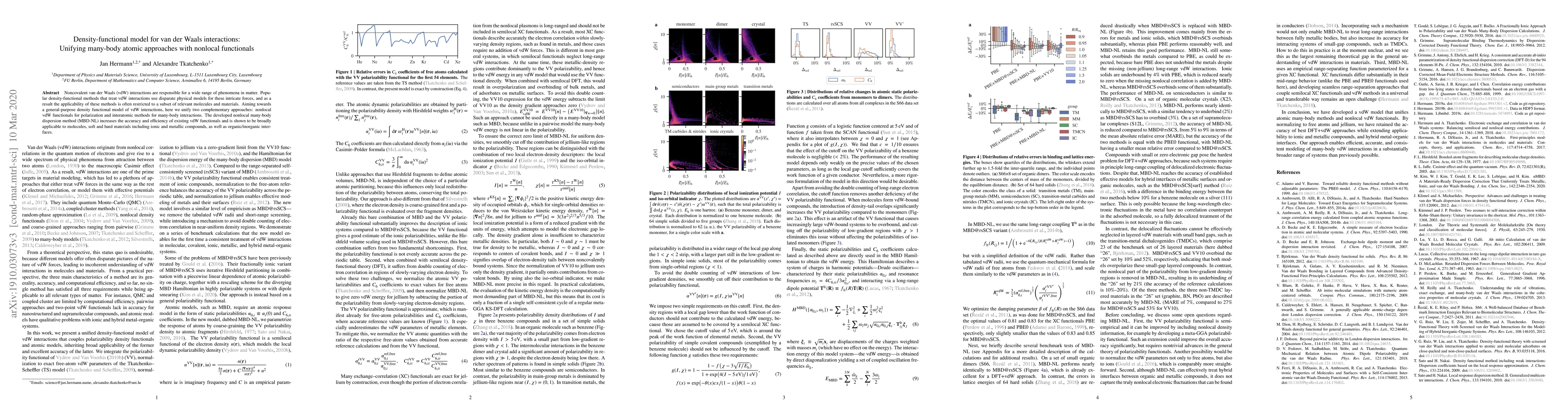 This paper presents a unified density-functional model for van der Waals interactions, combining nonlocal functionals and many-body atomic approaches to enhance accuracy and efficiency. The proposed MBD-NL method is shown to be broadly applicable across various materials, including molecules, soft and hard materials, and interfaces.