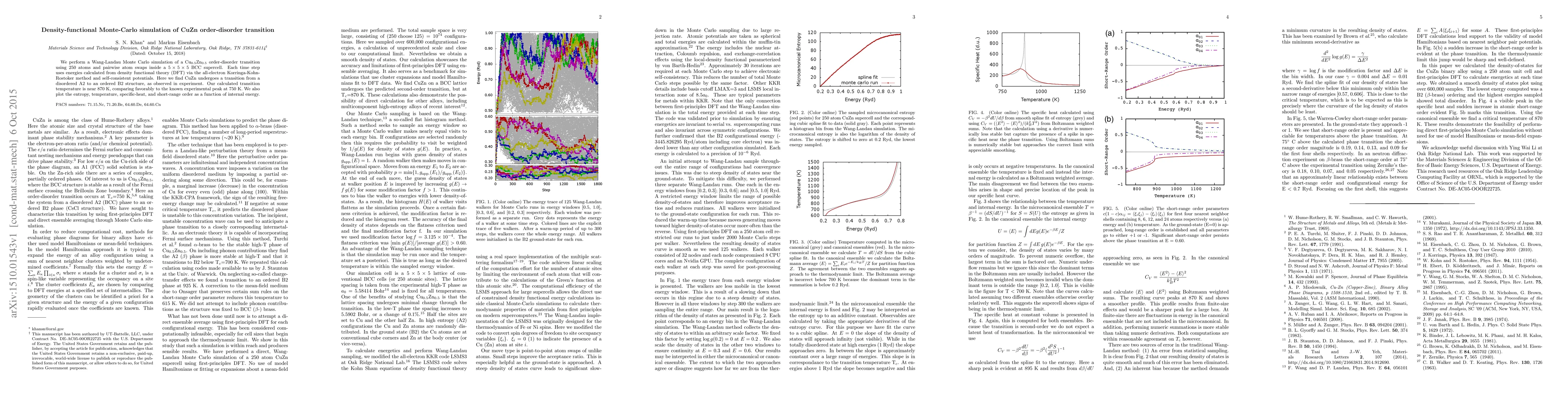 Researchers simulated a CuZn order-disorder transition using density-functional Monte-Carlo simulation, finding a calculated transition temperature near 870 K that compares favorably to the experimental peak at 750 K.