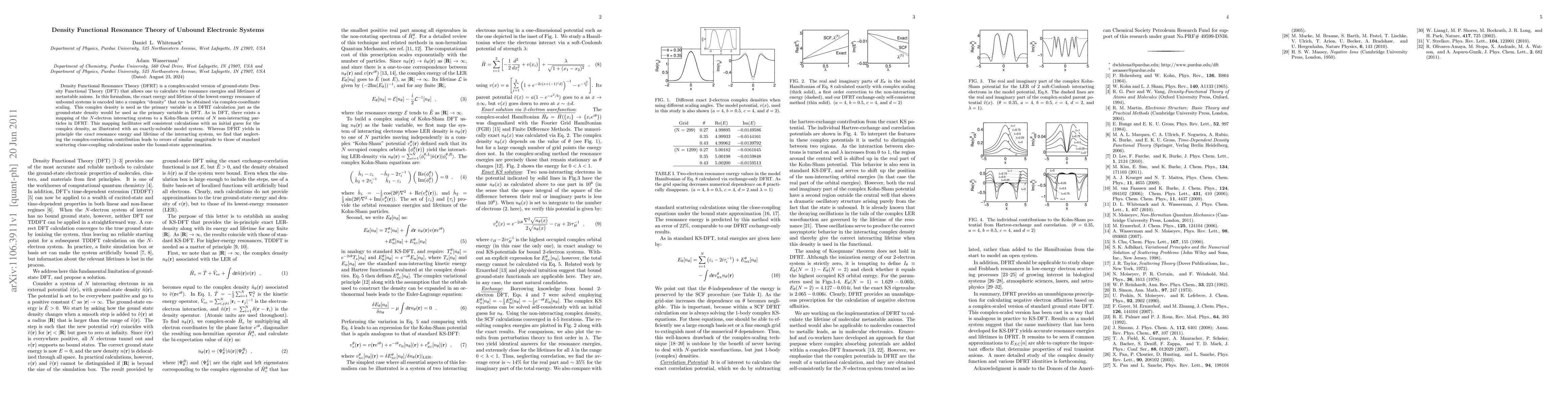 Density Functional Resonance Theory (DFRT) extends Density Functional Theory (DFT) to calculate resonance energies and lifetimes of metastable anions by using a complex-coordinate scaling method. Despite its potential for exact calculations, neglecting complex-correlation contributions results in errors comparable to standard scattering close-coupling methods.