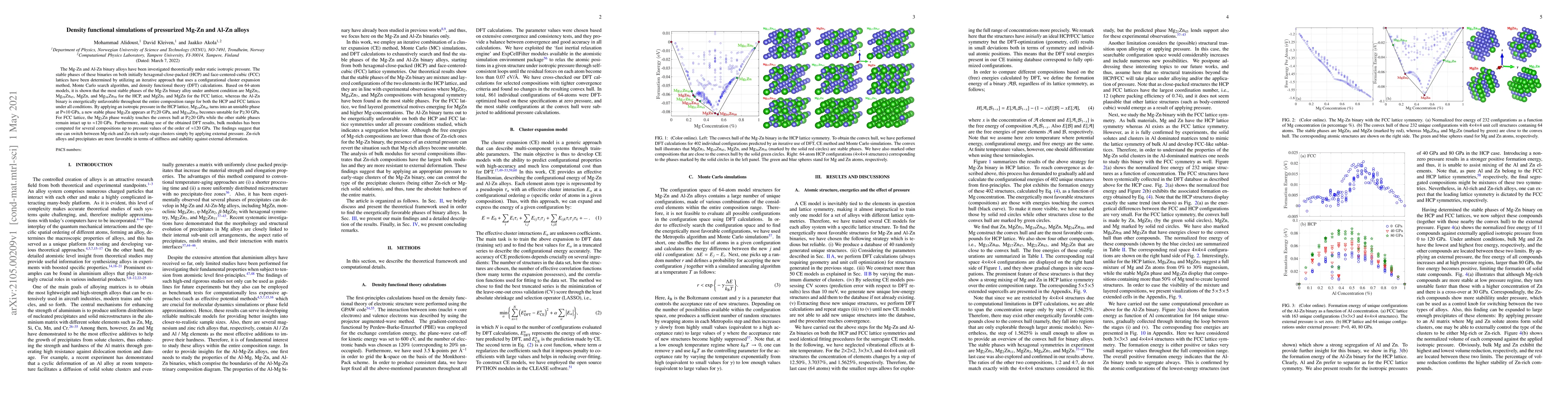 The paper presents a detailed computational study of Mg-Zn and Al-Zn alloys' stable phases under pressure using advanced density functional theory and cluster expansion methods.