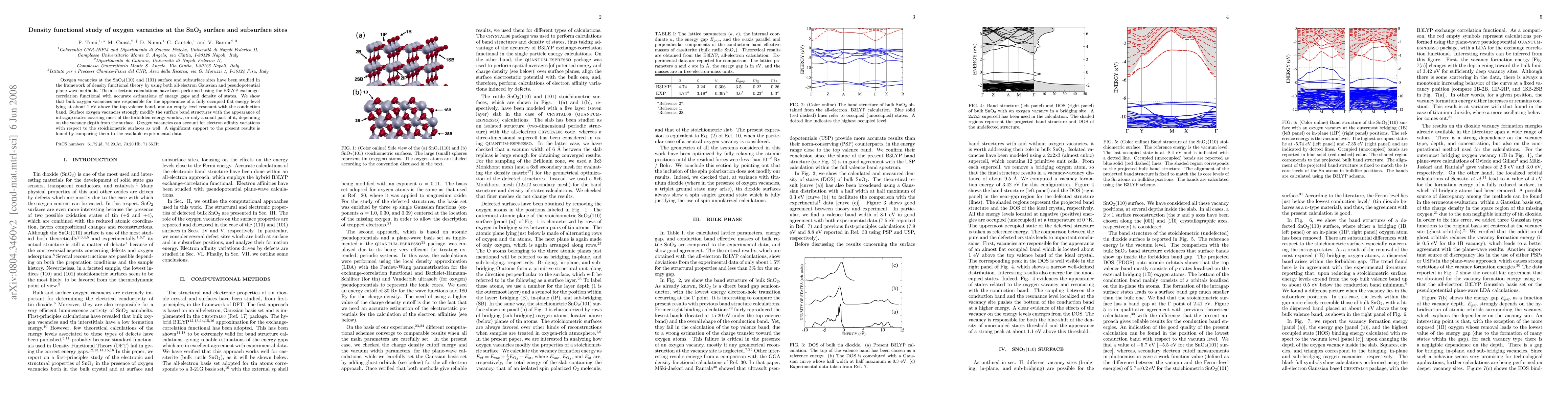 This study uses density functional theory to examine oxygen vacancies on SnO2(110) and (101) surfaces and subsurface sites. It reveals that bulk oxygen vacancies create filled and empty energy levels near valence and conduction bands, respectively. Surface vacancies alter surface band structures with intragap states, affecting electron affinity. Results align with experimental data.
