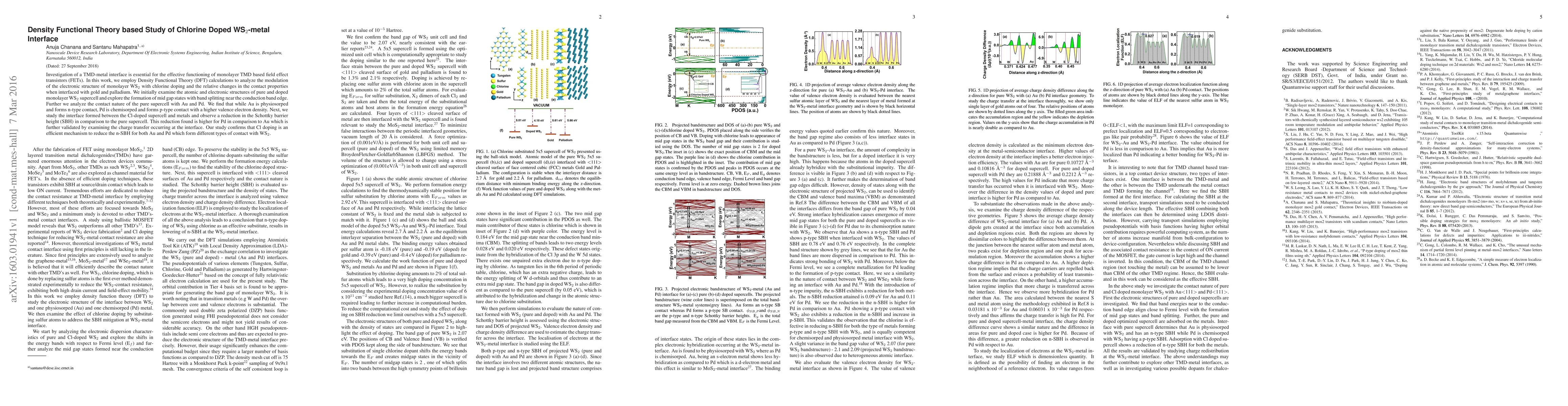 Investigation of a TMD-metal interface is essential for the effective functioning of monolayer TMD based field effect transistors (FETs). In this work, we employ Density Functional Theory (DFT) calculations to analyze the modulation of the electronic structure of monolayer WS2 with chlorine doping and the relative changes in the contact properties when interfaced with gold and palladium. We initially examine the atomic and electronic structures of pure and doped monolayer WS2 supercell and explore the formation of mid gap states with band splitting near the conduction band edge. Further we analyze the contact nature of the pure supercell with Au and Pd. We find that while Au is physiosorped and forms n-type contact, Pd is chemisorped and forms p-type contact with a higher valence electron density. Next, we study the interface formed between the Cl-doped supercell and metals and observe a reduction in the Schottky barrier height (SBH) in comparison to the pure supercell. This reduction found is higher for Pd in comparison to Au which is further validated by examining the charge transfer occurring at the interface. Our study confirms that Cl doping is an efficient mechanism to reduce the n-SBH for both Au and Pd which form different types of contact with WS2.