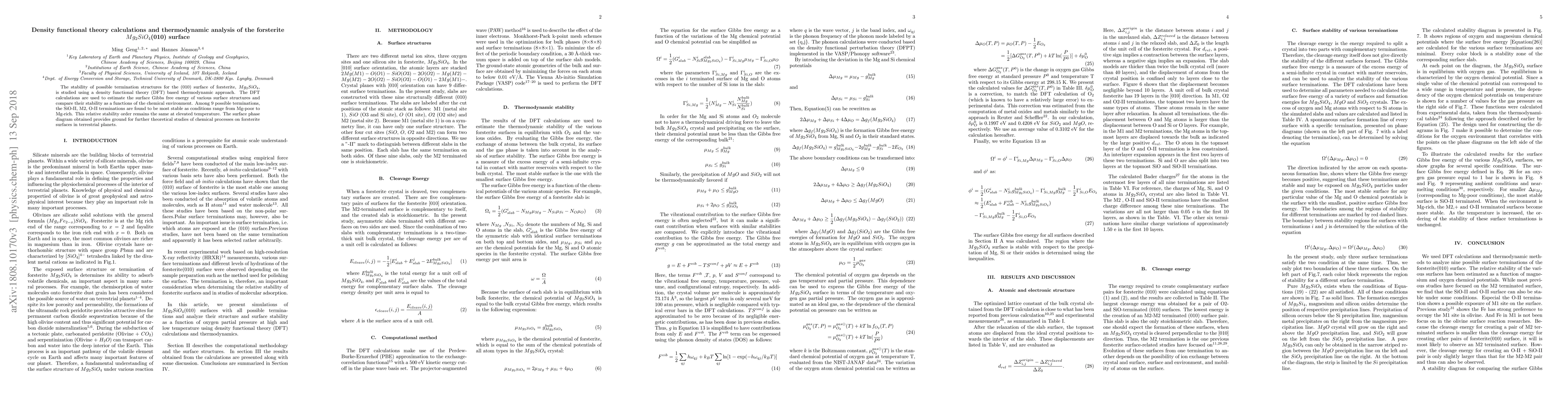The stability of possible termination structures for the (010) surface of forsterite, $ Mg_2SiO_4 $, is studied using a density functional theory (DFT) based thermodynamic approach. The DFT calculations are used to estimate the surface Gibbs free energy of various surface structures and compare their stability as a function of the chemical environment. Among 9 possible terminations, the SiO-II, M2, O-II terminations are found to be most stable as conditions range from Mg-poor to Mg-rich. This relative stability order remains the same at an elevated temperature. The surface phase diagram obtained provides ground for further theoretical studies of chemical processes on forsterite surfaces in terrestrial planets.