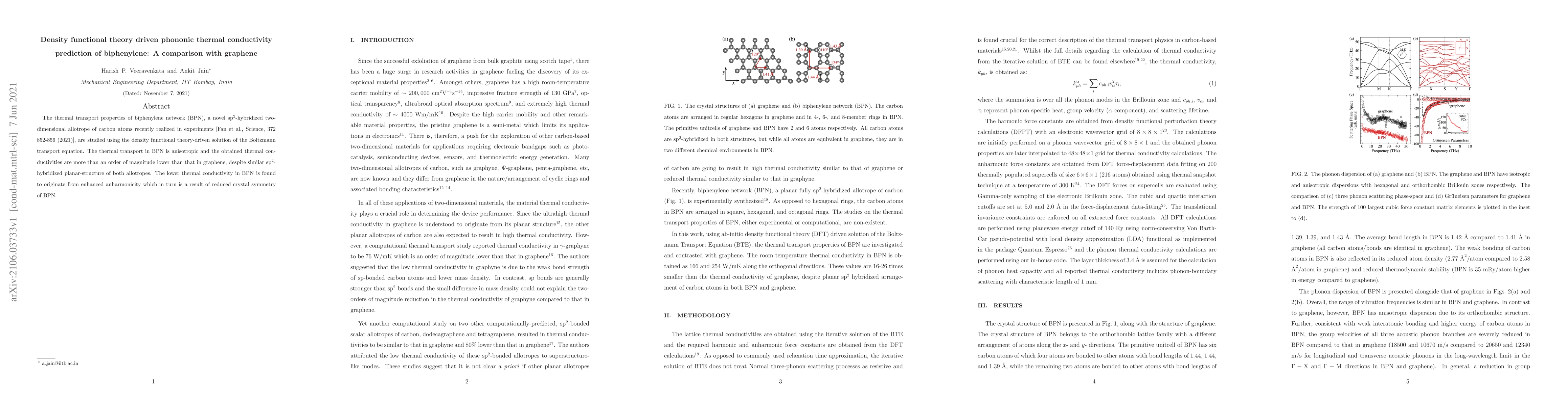 This paper uses density functional theory to predict the phononic thermal conductivity of biphenylene, a novel sp2-hybridized carbon allotrope, finding it significantly lower than that of graphene due to enhanced anharmonicity from reduced crystal symmetry.