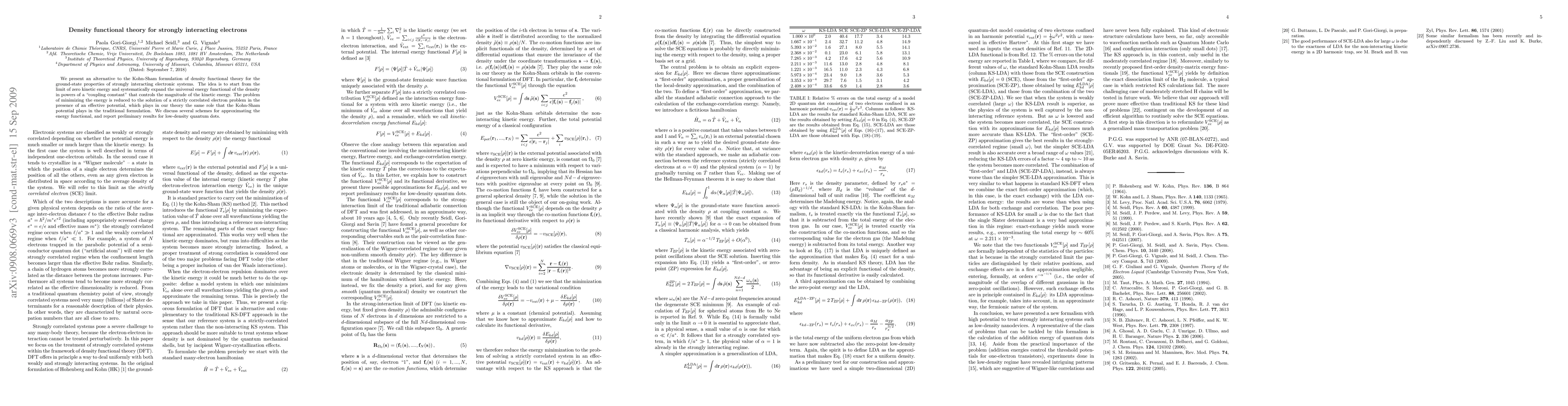 This paper proposes an alternative to the Kohn-Sham formulation of density functional theory for strongly interacting electronic systems, starting from a zero kinetic energy limit and expanding the universal energy functional. The approach reduces the energy minimization problem to solving a correlated electron problem with an effective potential.
