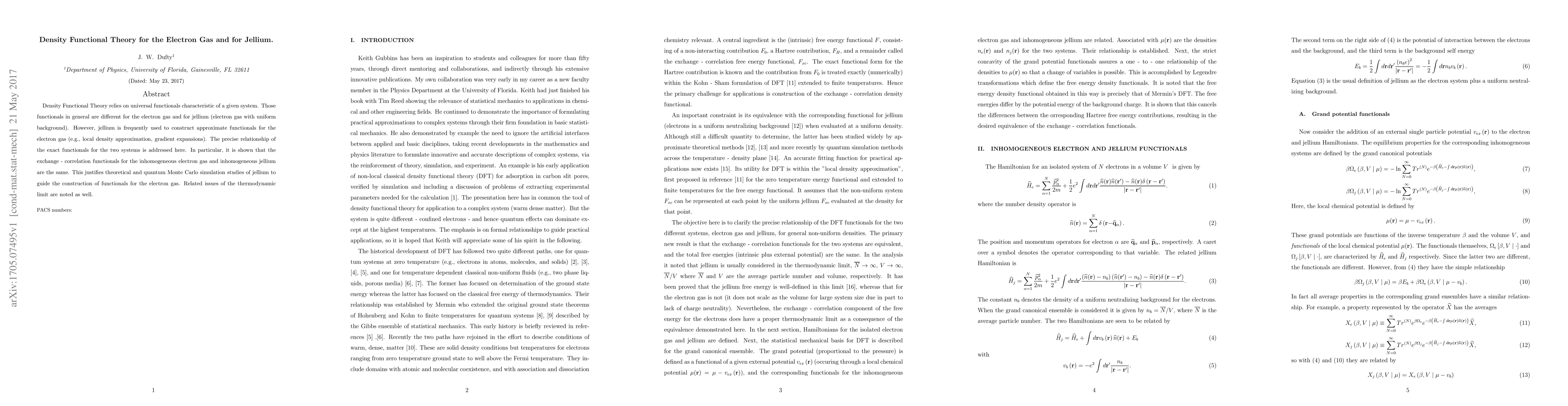 This paper investigates the relationship between Density Functional Theory (DFT) for the electron gas and jellium, demonstrating that their exchange-correlation functionals are identical despite differences in their functionals. It justifies using jellium models to guide the construction of DFT functionals for the electron gas and discusses related thermodynamic considerations.