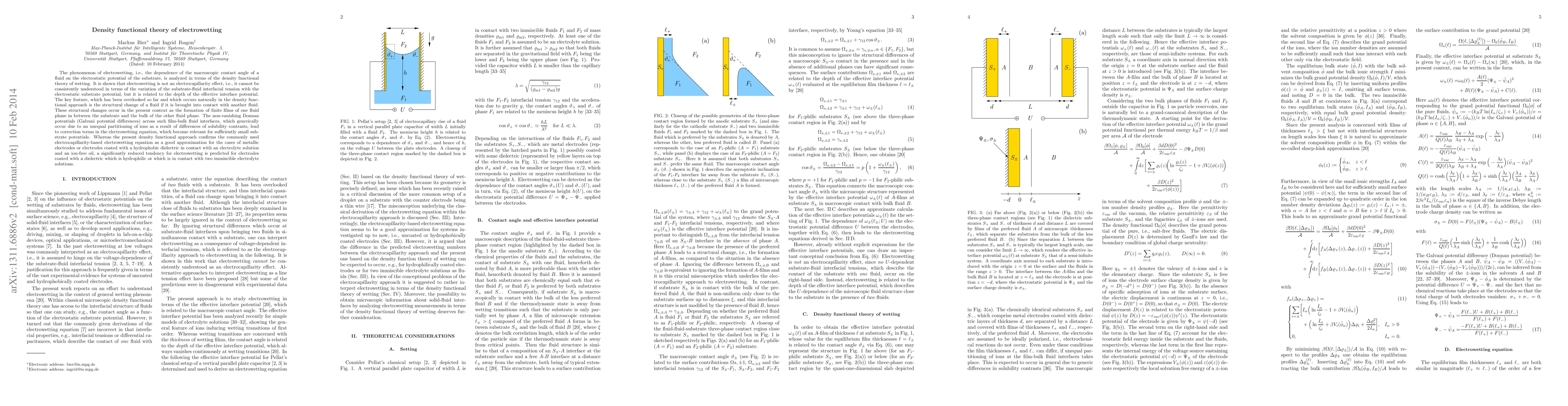 This paper utilizes density functional theory to analyze electrowetting, demonstrating that it's not solely an electrocapillarity effect but involves structural changes in fluid due to interfacial potential depth. It highlights the formation of finite fluid films and Donnan potentials influencing electrowetting, especially at small substrate potentials.