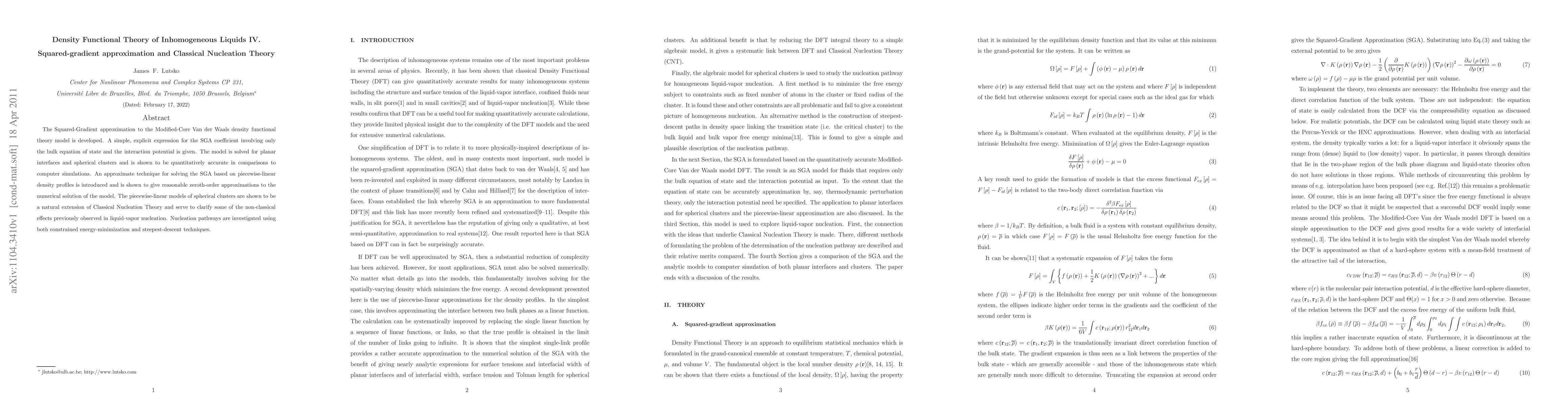 This paper develops the Squared-Gradient approximation (SGA) within the Modified-Core Van der Waals density functional theory, providing a simple expression for the SGA coefficient. It demonstrates the model's accuracy through comparisons with computer simulations and introduces a piecewise-linear approach to approximate solutions, extending Classical Nucleation Theory to clarify non-classical nucleation effects.