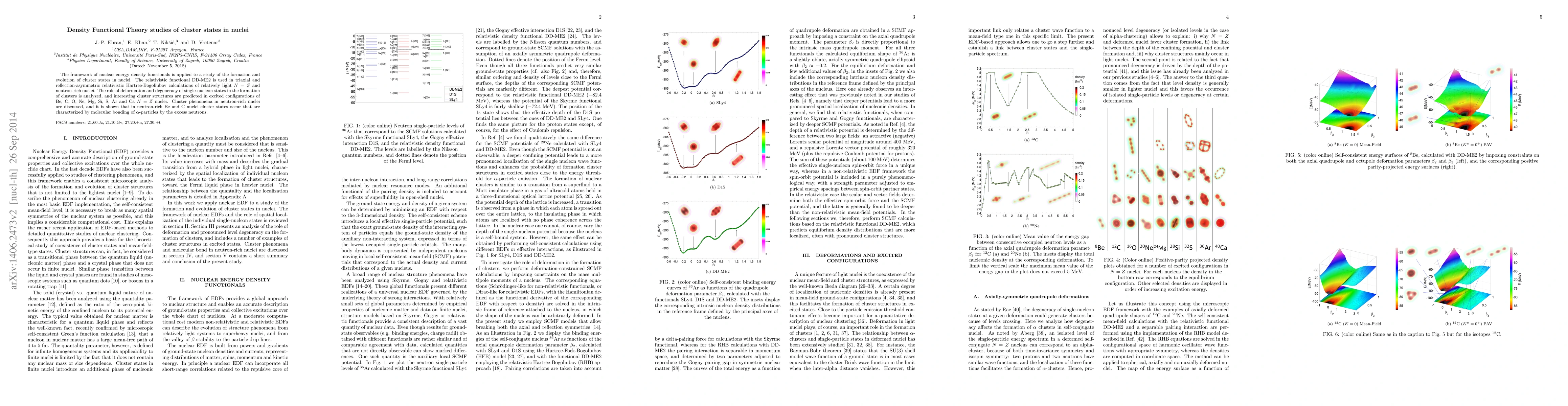 This paper uses relativistic density functional theory to investigate cluster states in various nuclei, predicting interesting cluster structures in $N = Z$ and neutron-rich isotopes. It highlights the role of deformation and neutron excess in forming cluster states, particularly in neutron-rich Be and C nuclei.
