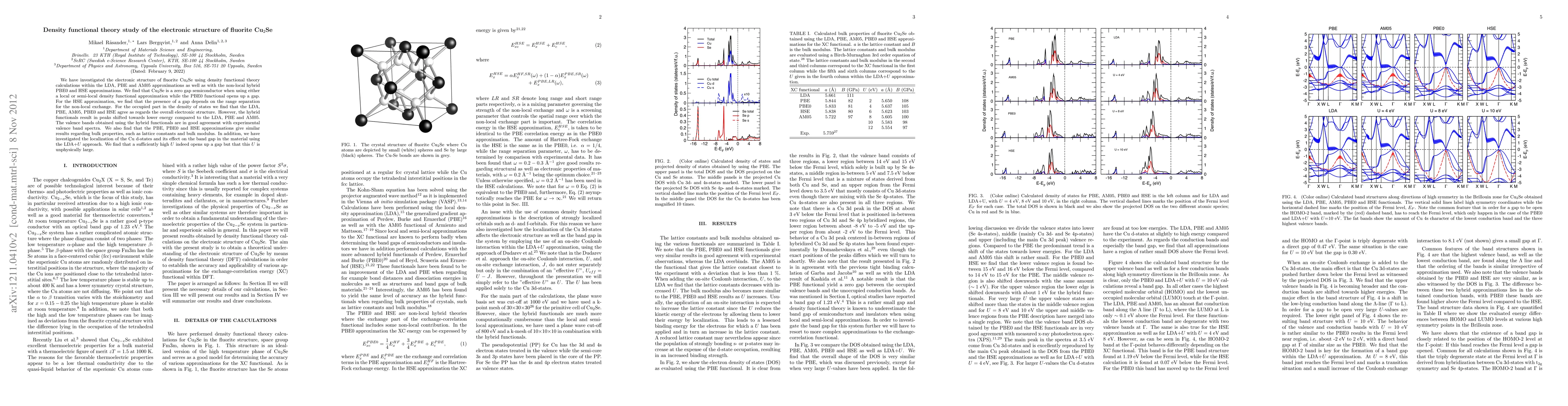 We have investigated the electronic structure of fluorite Cu$_{2}$Se using density functional theory calculations within the LDA, PBE and AM05 approximations as well as with the non-local hybrid PBE0 and HSE approximations. Our results show that Cu$_{2}$Se is a zero gap semiconductor when using either a local or semi-local density functional approximation while there exists a gap when using the PBE0 functional. For the HSE approximation, we find that the presence of a gap depends on the range separation for the non-local exchange within the HSE approximation. For the occupied states we find that the LDA, PBE, AM05, PBE0 and HSE agrees when regarding the overall structure, however, the hybrid functionals are shifted towards lower energy values compared to the LDA, PBE and AM05. The valence bands obtained using the hybrid functionals are in good agreement with experimental valence band spectra. We also find that the PBE, PBE0 and HSE approximations give similar results regarding bulk properties, such as lattice constants and bulk modulus. In addition, we have investigated the localization of the Cu d-states and its effect on the band gap in the material using the LDA+U approach. We find that a gap is opened up by increasing the $U$, however, the $U$ values required for a gap opening is unrealistically high.