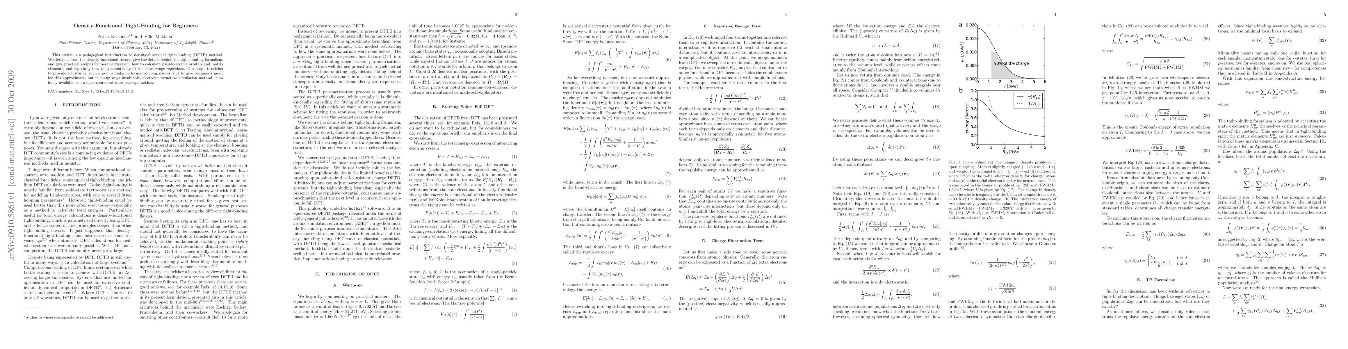 This article offers a beginner's guide to the density-functional tight-binding (DFTB) method, deriving it from density-functional theory and detailing the tight-binding formalism. It provides practical recipes for parametrization, including calculating pseudo-atomic orbitals and matrix elements, and fitting short-range repulsions.