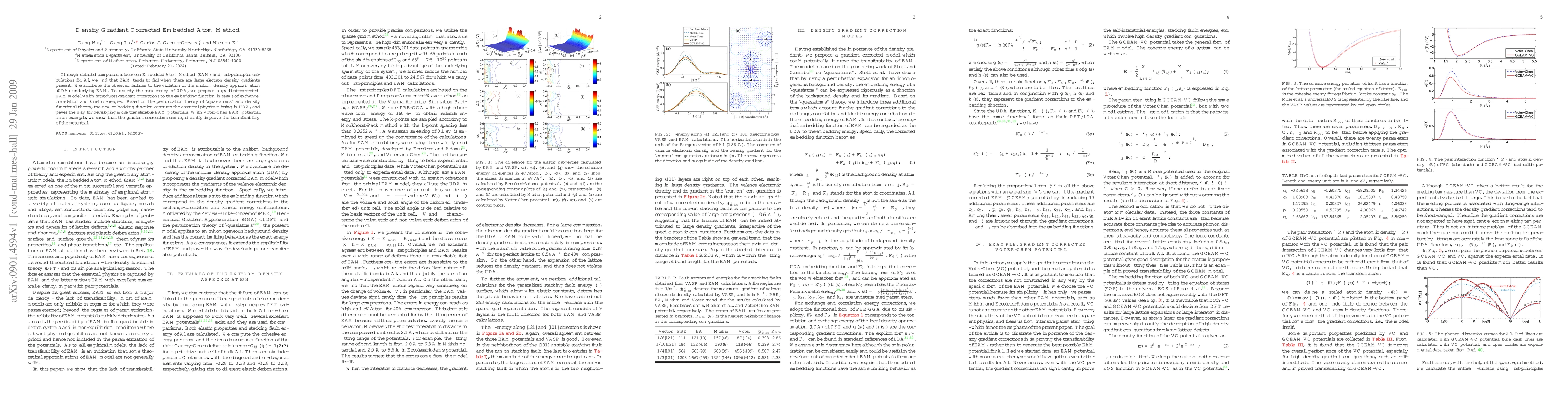 This paper proposes a density-gradient-corrected version of the Embedded Atom Method (EAM) to address its failure in scenarios with large electron density gradients. It introduces gradient corrections to the embedding function to better capture essential physics, significantly improving the transferability of the potential.